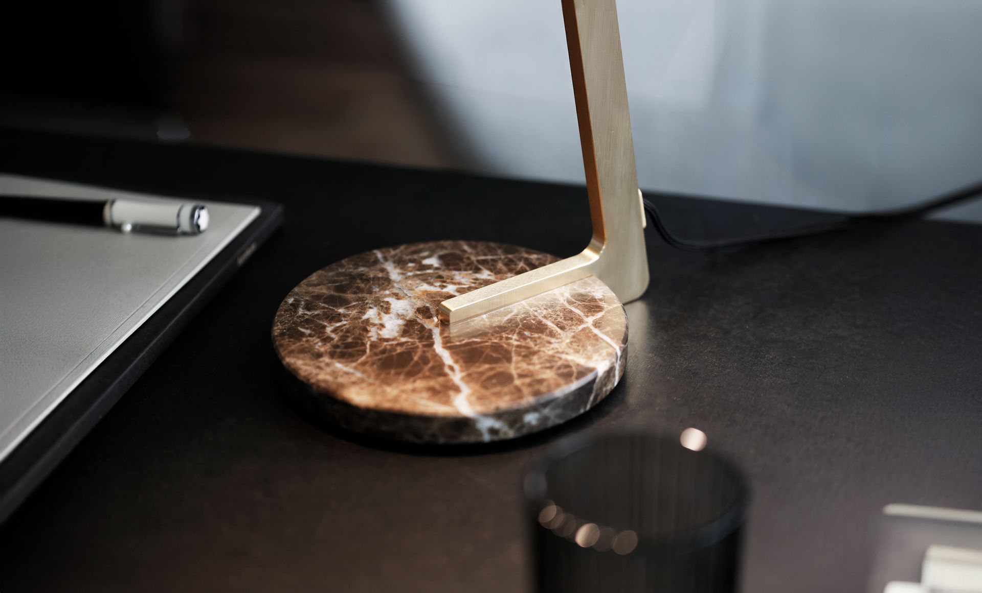 Marble is an expressive interior statement. As the matt satin base of the Avinon floor and table lamp, the classic natural stone demonstrates contemporary relevance. Puristic design with a distinctive patina marks the beginning of a new tradition. We use high-quality marble that we source exclusively from regional producers and offer in three color styles - from almost black (Nero Marquina) to brown-black (Emperador Dark) to white-gray (Calacatta Veneto).