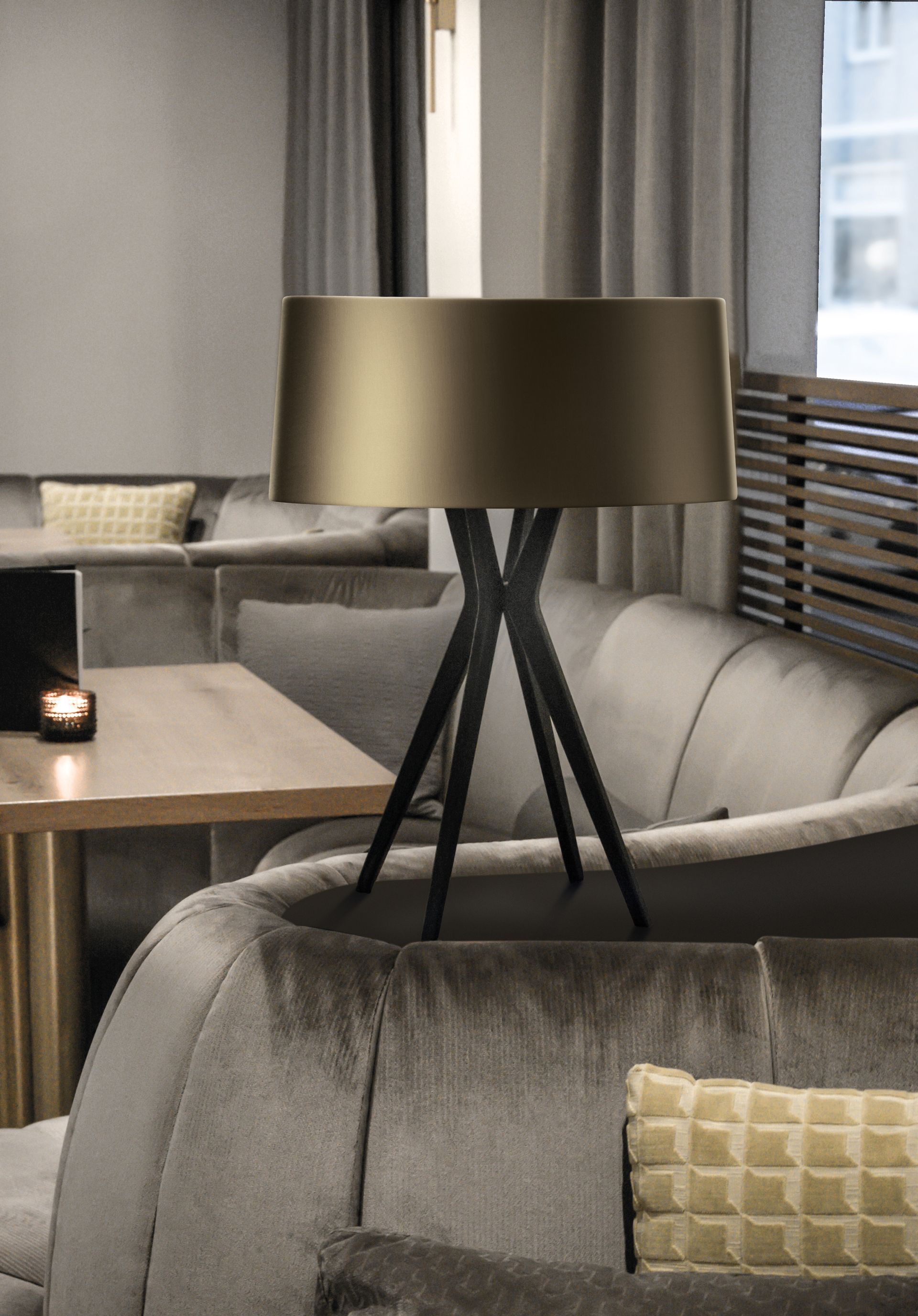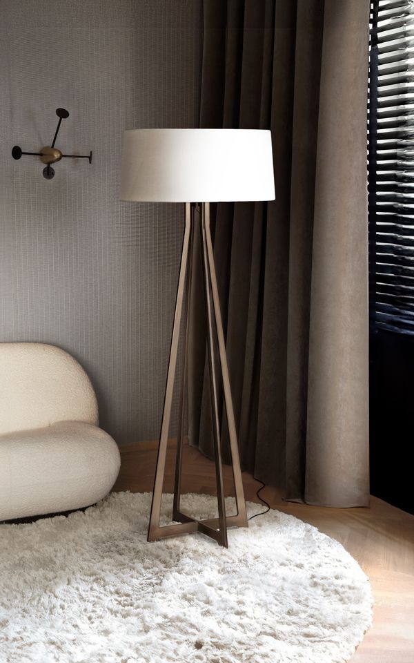The original BALADA & CO. model, assumes a striking, self-confident presence in any space. Its four legs make it an impressive, epic manifestation that carries its shade in a powerful, dignified manner while its long arms protectively encompass the light.