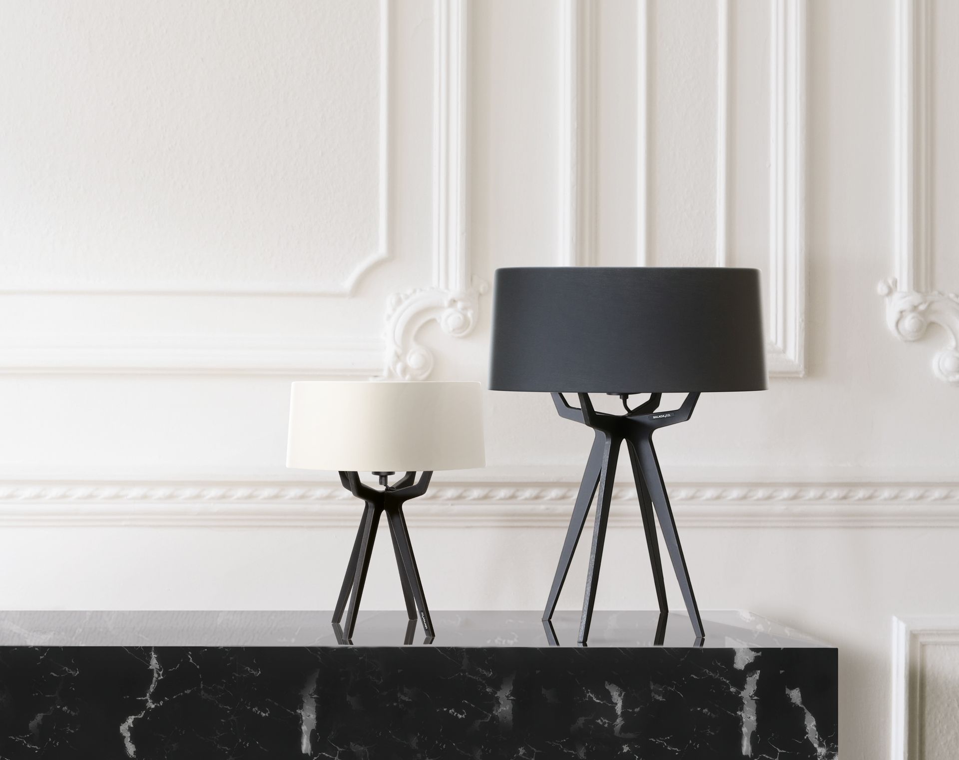 The Debut Collection interprets various forms of load-bearing, featuring allusions that range from powerful masculinity to gentle femininity. Inventive amalgamation of symmetries, contours, and radii has yielded lamps of singular character. The unique geometry of the four legs creates distinctive silhouettes that vary based on line of sight, allowing the observer to rediscover these lamps again and again.