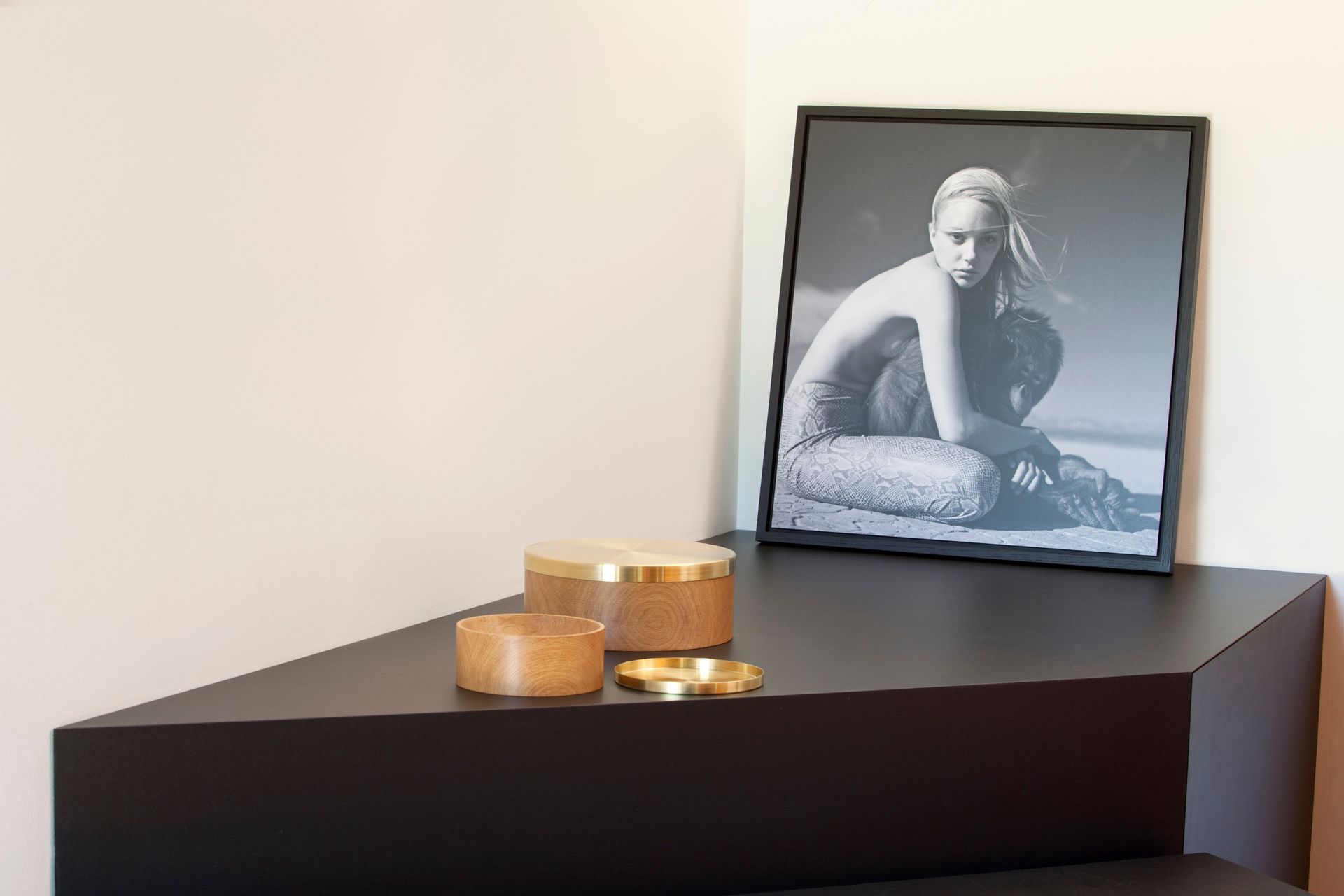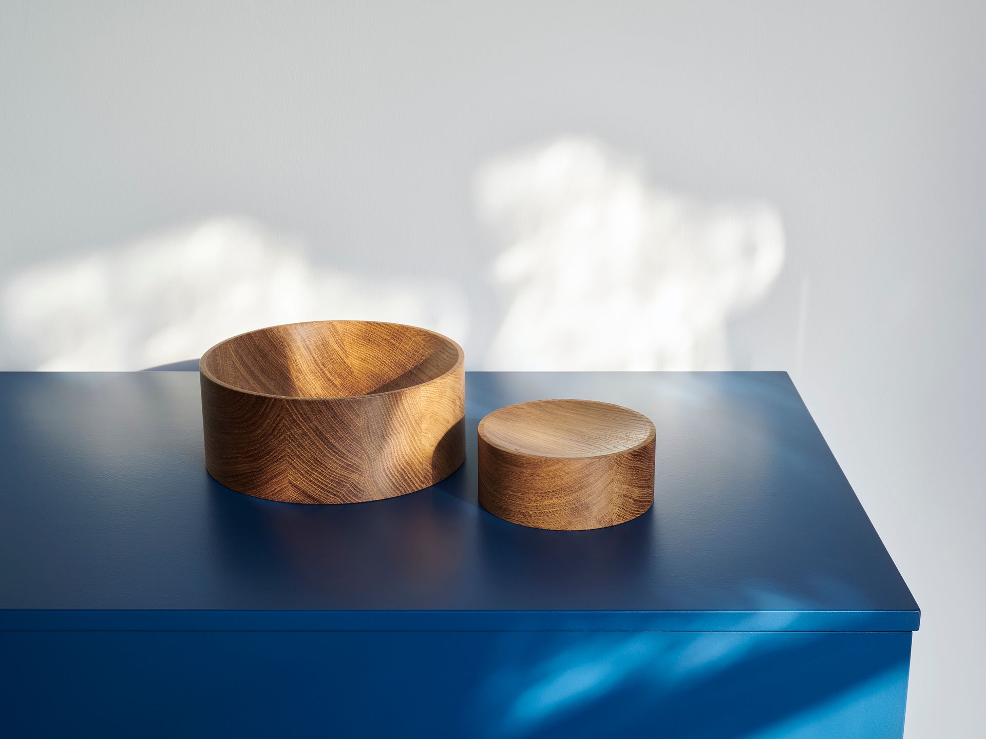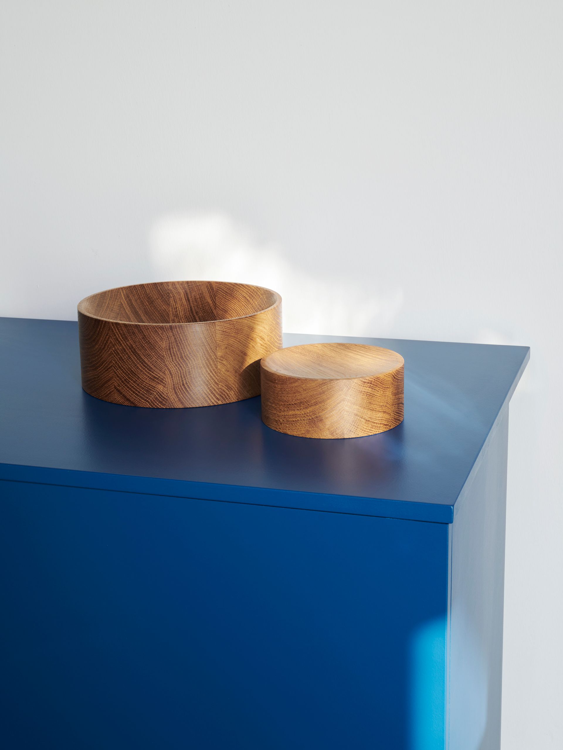 The turned bowl DEN captivates by its pronounced versatility. Its flowing radii can be used as a slightly bent tray or, turned, as a deep bowl. Thus, the sophisticated bowl adapts to individual requirements. The charming reflections of the pressed brass body will either harmonize with the oak or contrast with the dark walnut. The optional brass element serves as a lid, a saucer or a little bowl of its own, developing a special patina over time, unless being treated with a special care product.