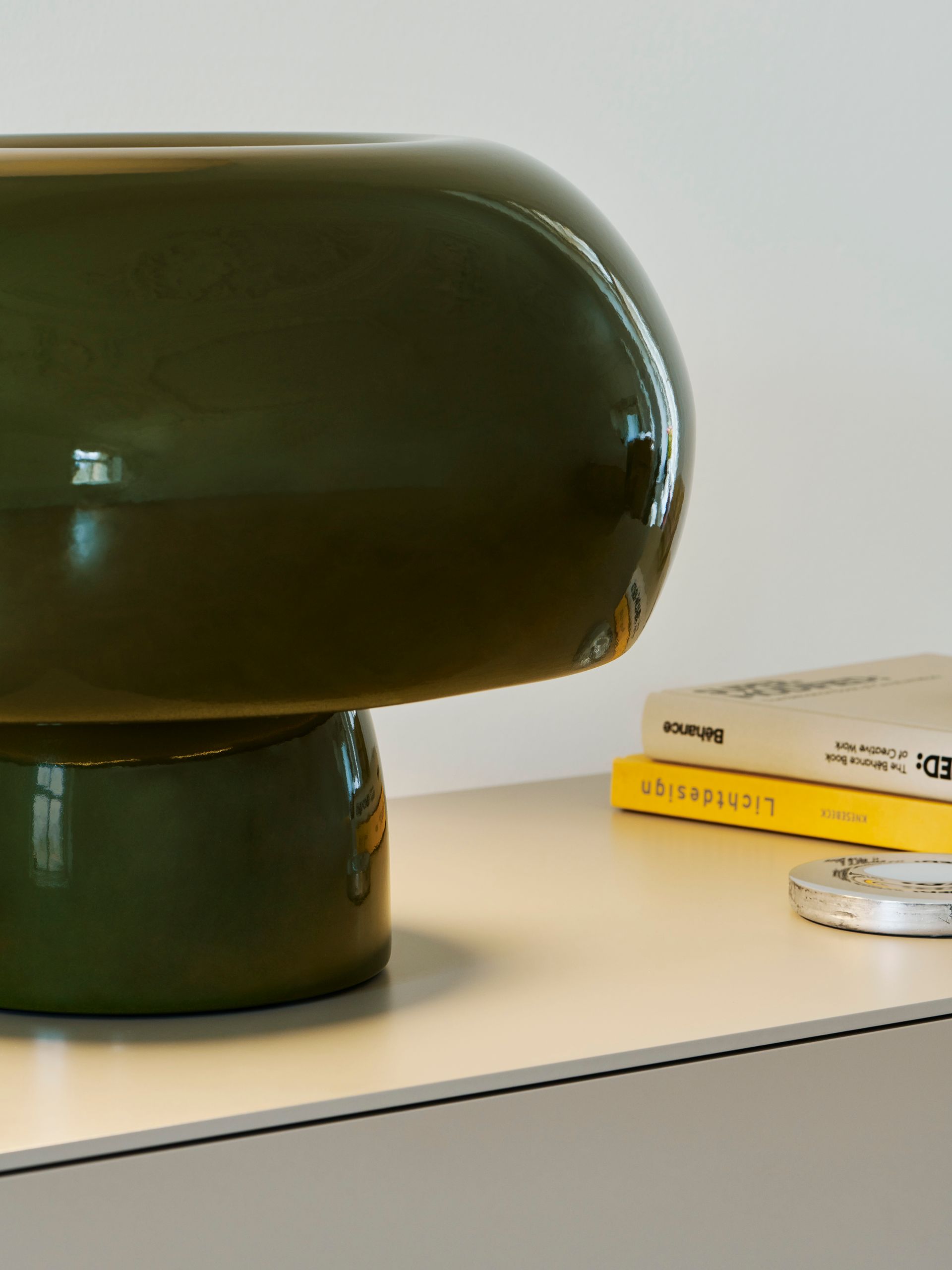 FONTE is an impressive lighting object by Christian Haas, which emphasizes the harmonious round form and the solid materiality of glossy ceramic. The handmade table light is characterized by the imposing lampshade, which gives the design presence and inside which the dimmable light source is located. This illuminates the extraordinary lighting object up and down thus creating an individual atmosphere with its soft glow. The elegant table light FONTE carries Christian Haas‘ distinct design language and is available in different ceramic colours