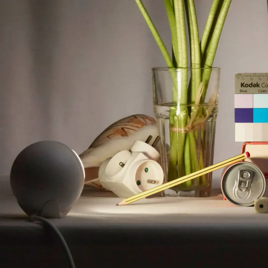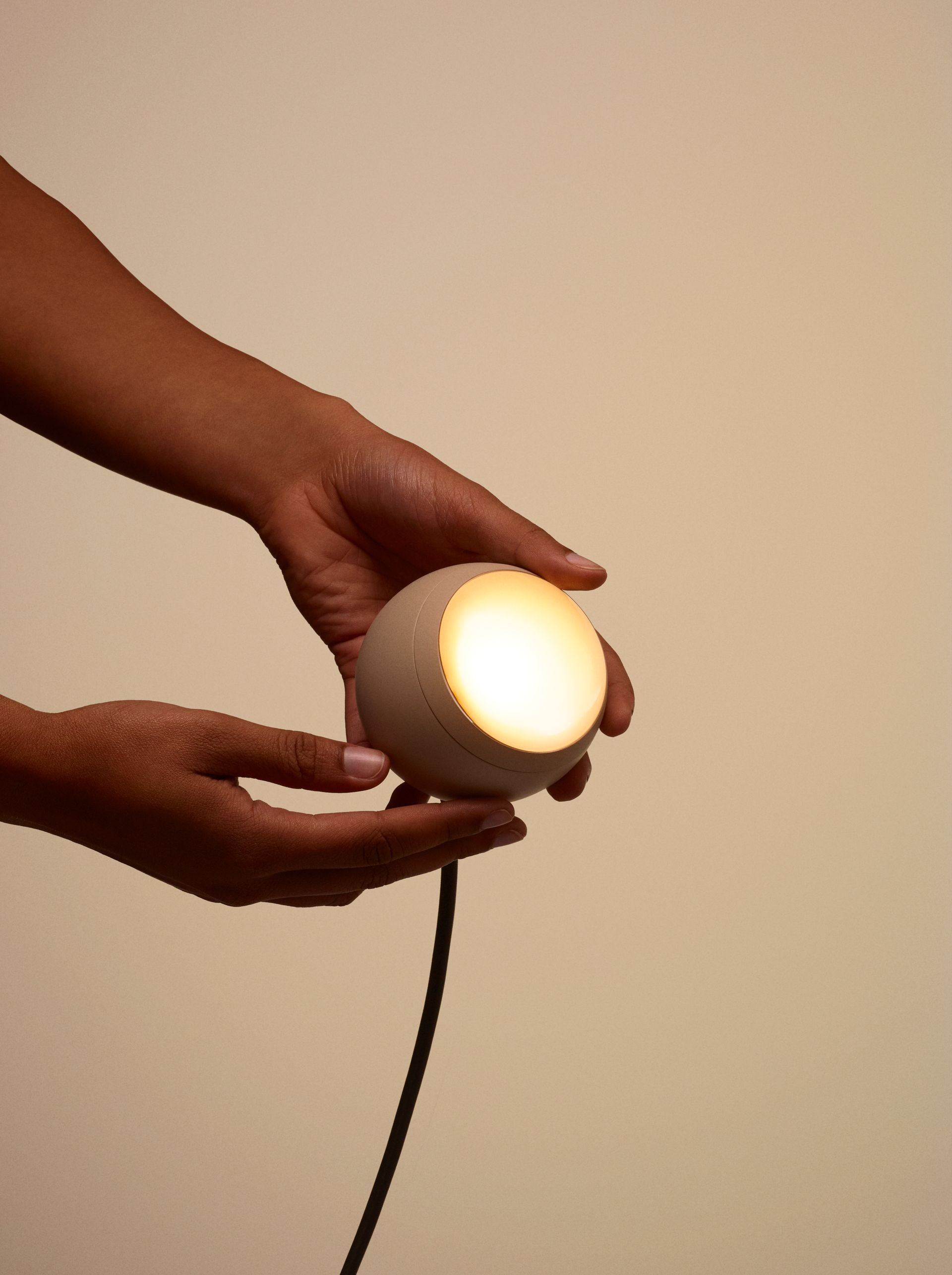 Falling in Love is a playful spotlight that beams brilliant highlights on any chosen surface or object. Easily moveable, this little lamp always brightens the mood.
