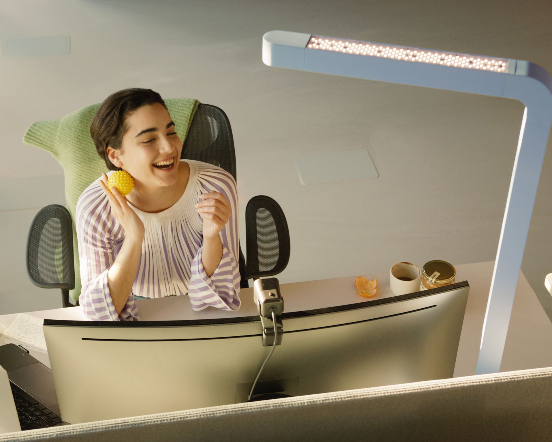 Team Home is the first professional luminaire for your home office. Its powerful Beam Lens technology illuminates your workstation brightly, evenly and without glare. Indirect light creates a generous sense of space, which simplifies and optimizes long working hours in the home office.