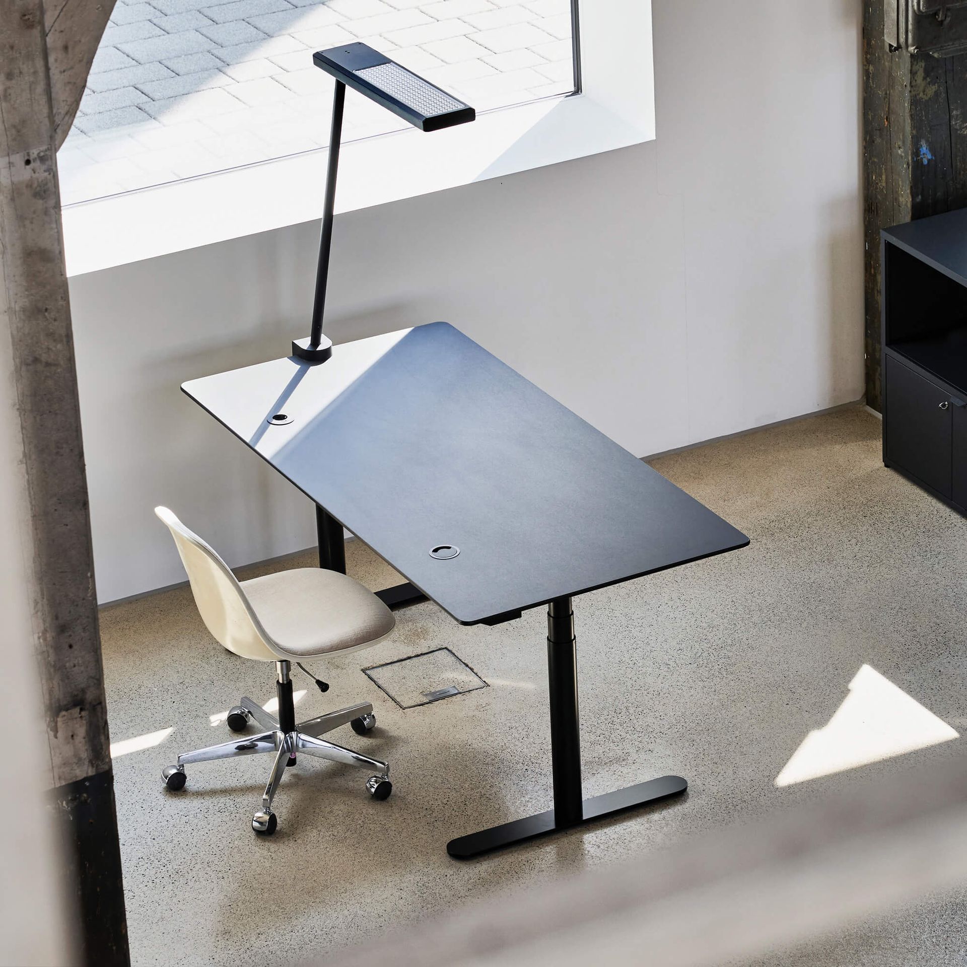 Xt-a Single is our first luminaire for height-adjustable desks. The lamp moves flexibly up and down with the desk so that light is uniform and consistent, even when working in a standing position.