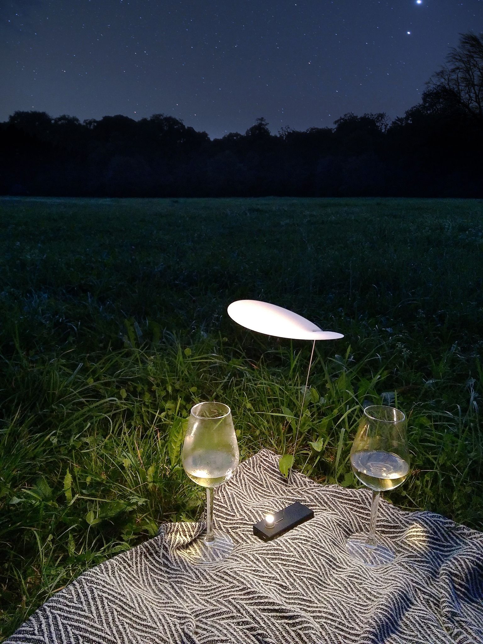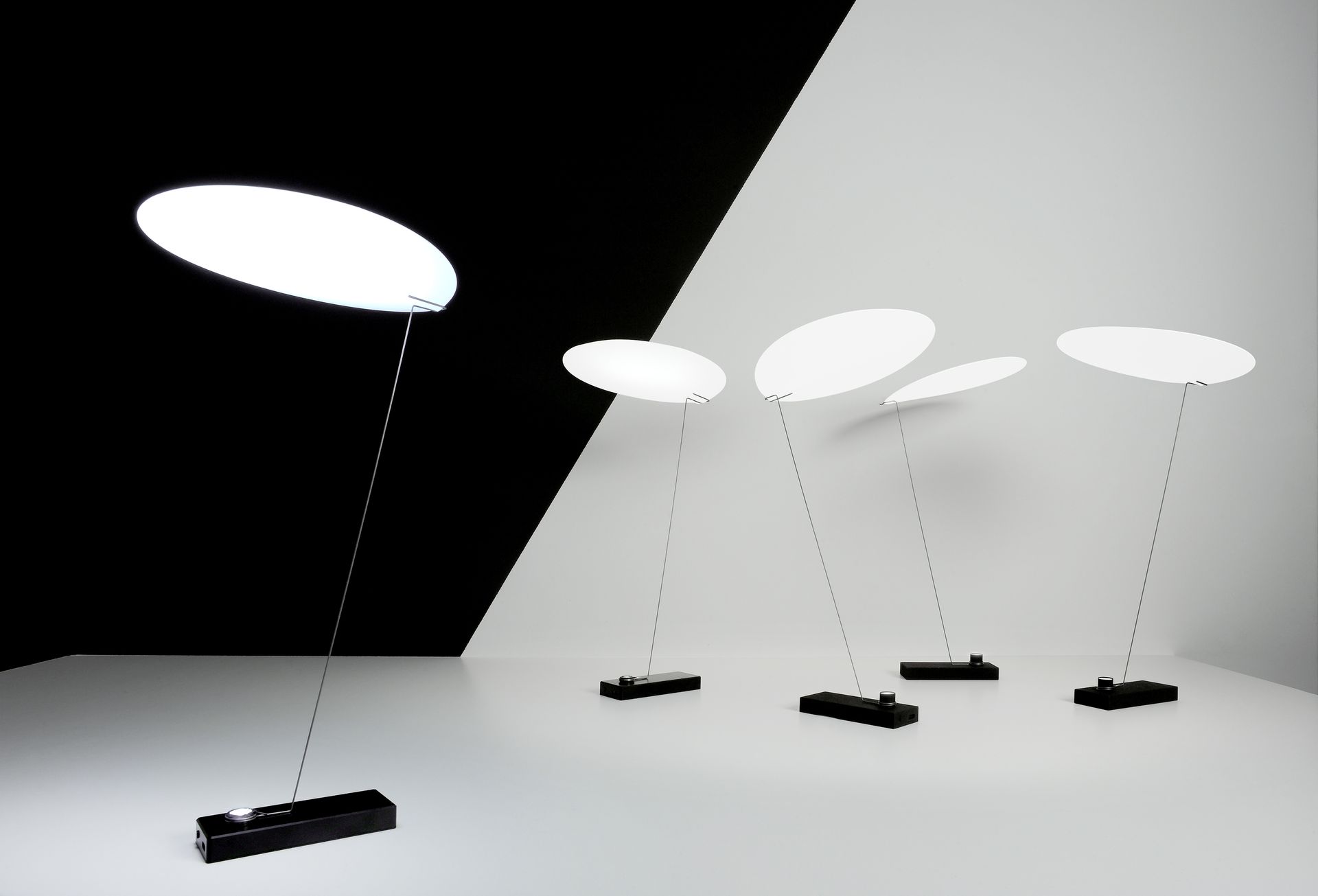 Koyoo is a small, portable light object. Only held by a wire spring a bright circle hovers over a black, narrow foot. The light source is integrated in the foot. The LED illuminates the circle perfectly. Used on a table, the illuminated paper shade is below eye level and thus makes a very pleasant, relaxing light for beautiful moments.With three different paper covers Ø 17,5 cm. Three levels of brightness can be set with a button. A fully charged battery allows operation of approx. 5 / 10 / 36 h (without cable.)