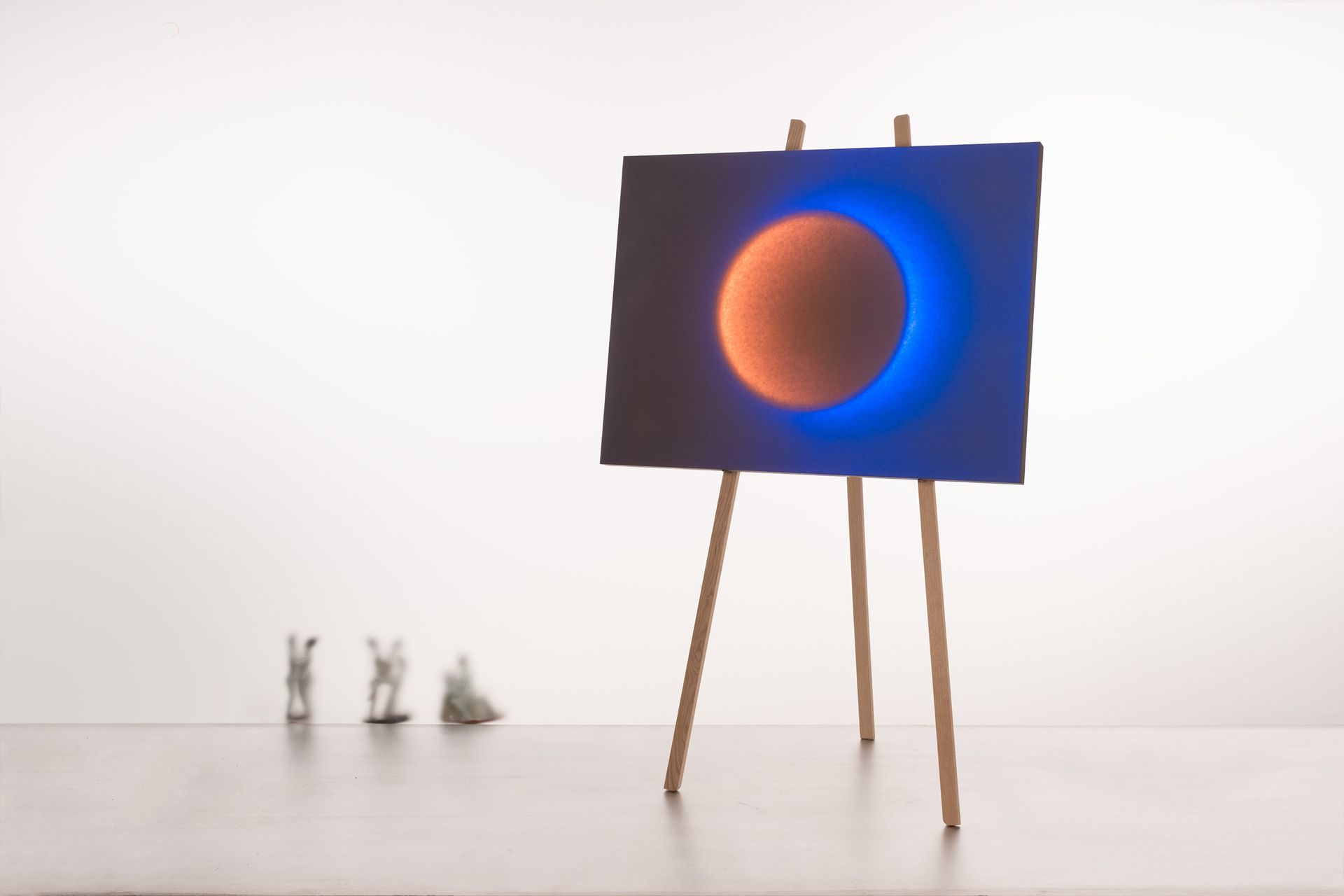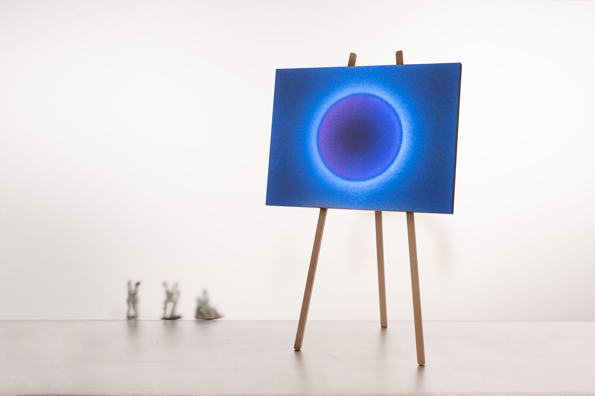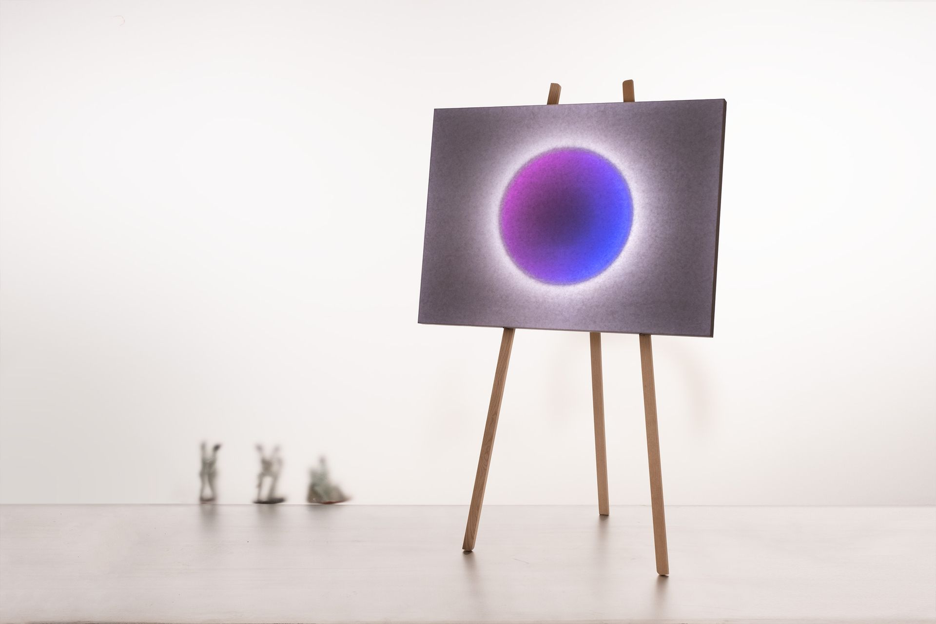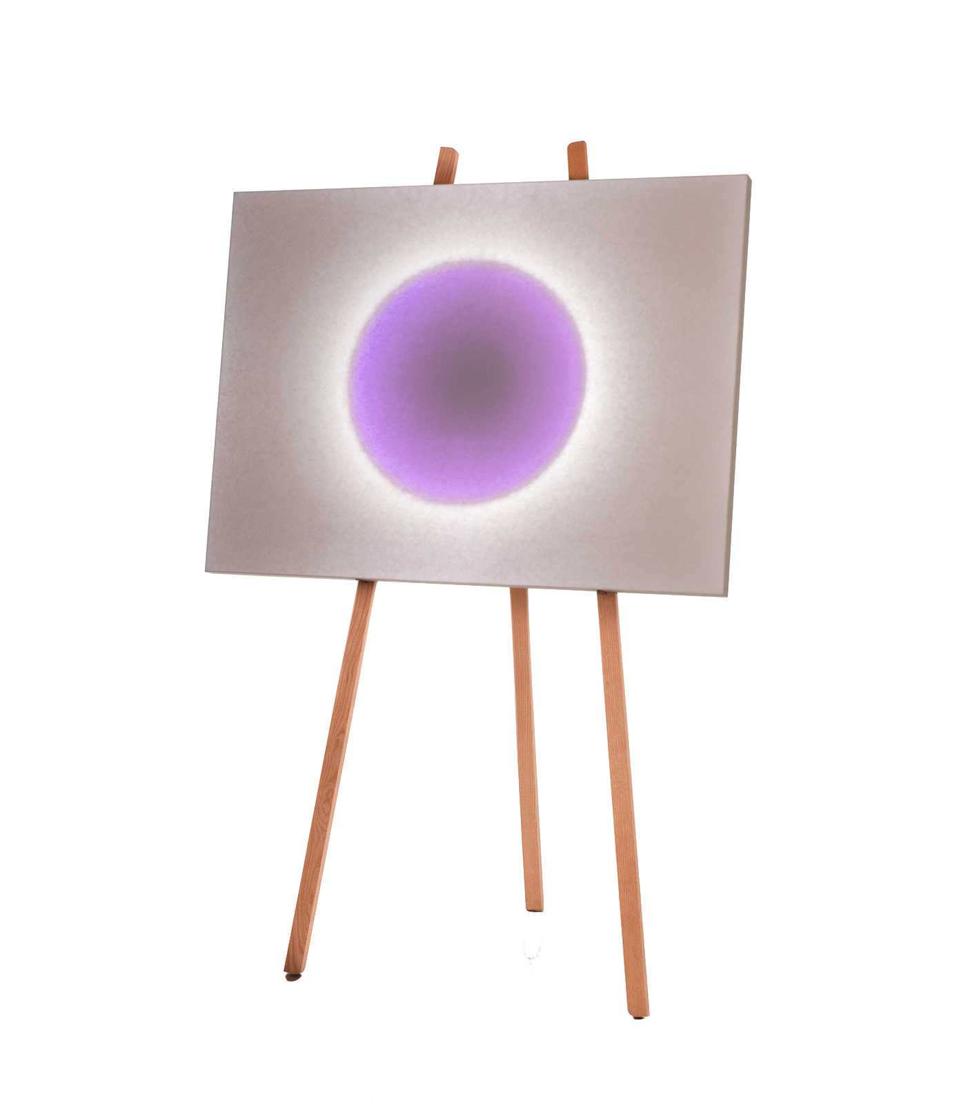 MOODMOON framed can create a total of 17 moods, three more than the classic wall version. Nine of these moods are already included in the wall lamp, eight are new and tailor-made for the framed version. The closed frame allowed the designer to experiment with colourful compositions, as the colour does not radiate onto the wall but is impressively "held" in the frame. The light or the different light moods can be controlled and dimmed via the free Ingo Maurer Digital App, just like the classic MOODMOON.