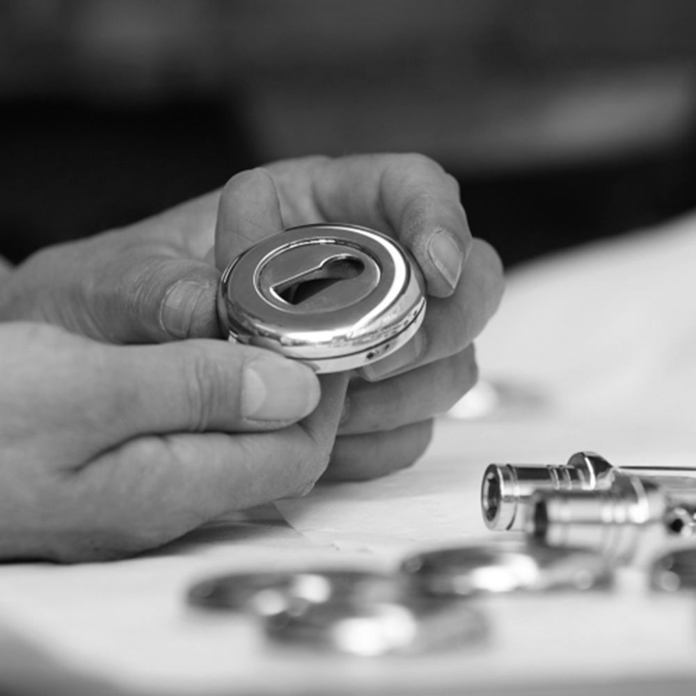 The individual parts go through more than twenty work steps before they are assembled into a door fitting. To then lie in your hand as a noble individual piece.