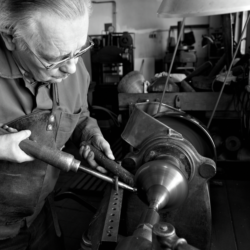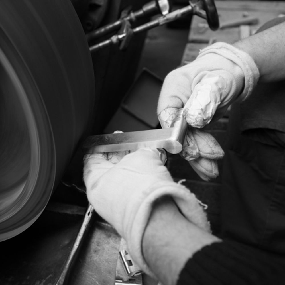 Only the perfect parts get their final refinement in the galvanic bath. Individually attached by hand, they are immersed in the nickel or chrome baths. Numerous intermediate checks allow everything that isn't perfect to go back into the casting furnace. Our claims do not allow any defects.