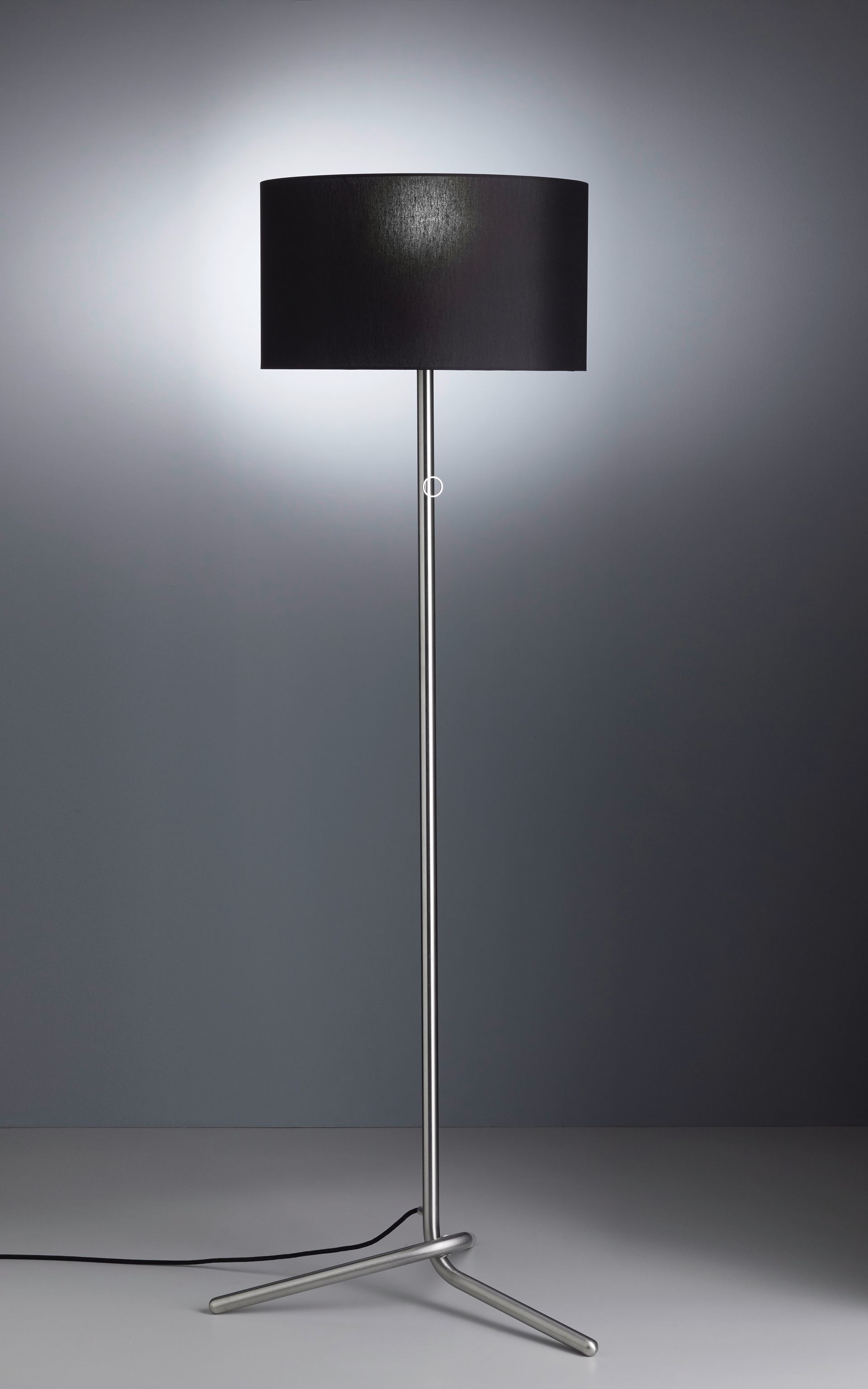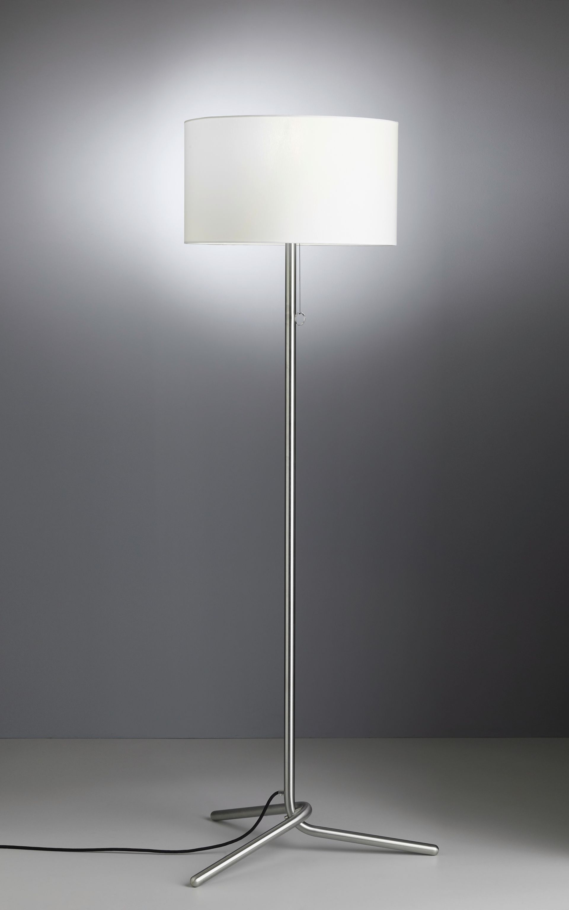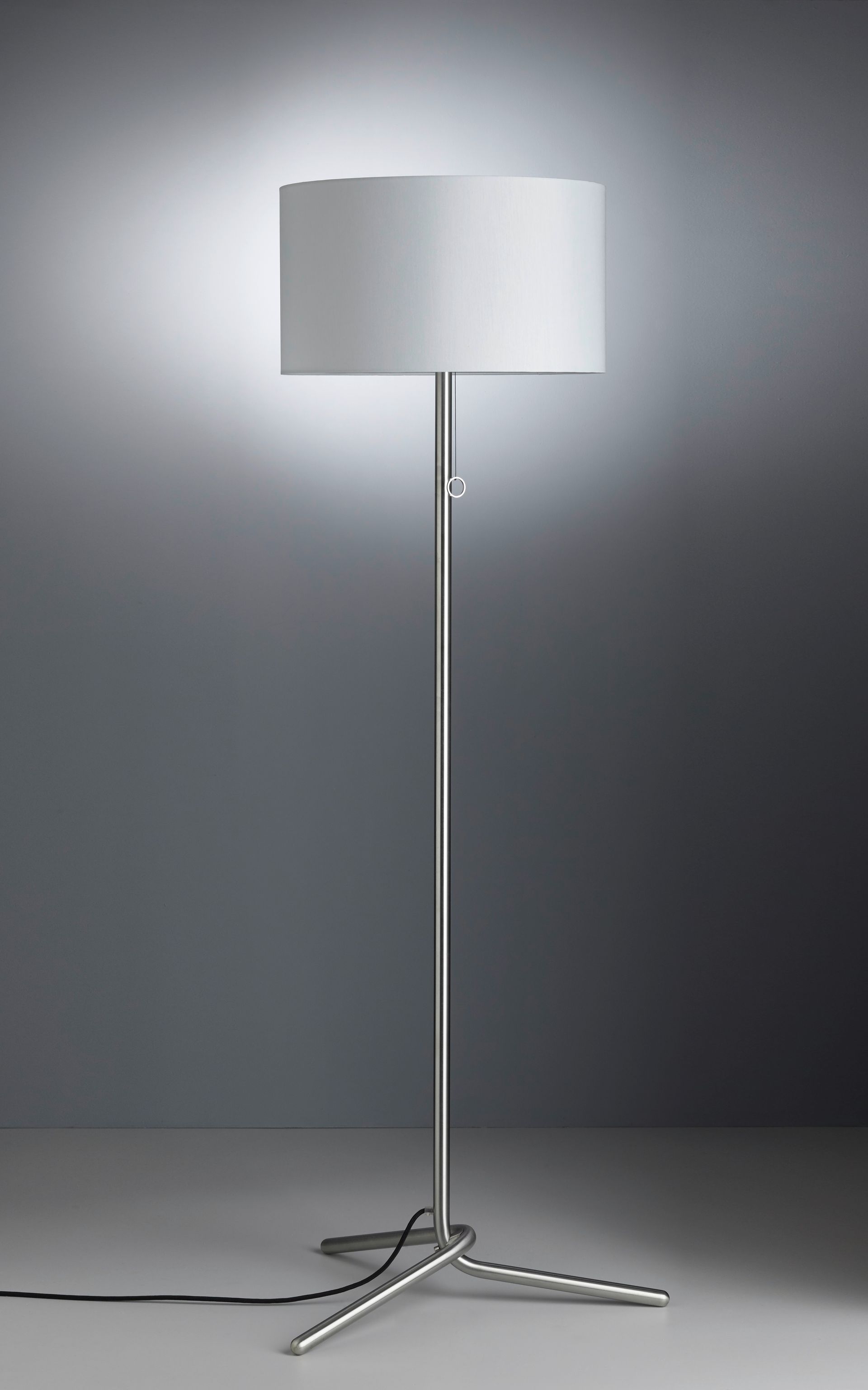 The TECNOLUMEN “Baton” CSL 08 floor lamp has a proven, elegant look. Its tilting, cylindrical shade gives it a truly original designer character. As it’s made of fine chintz fabric, it only lets through some of the light, channelling the rest upwards and downwards.
