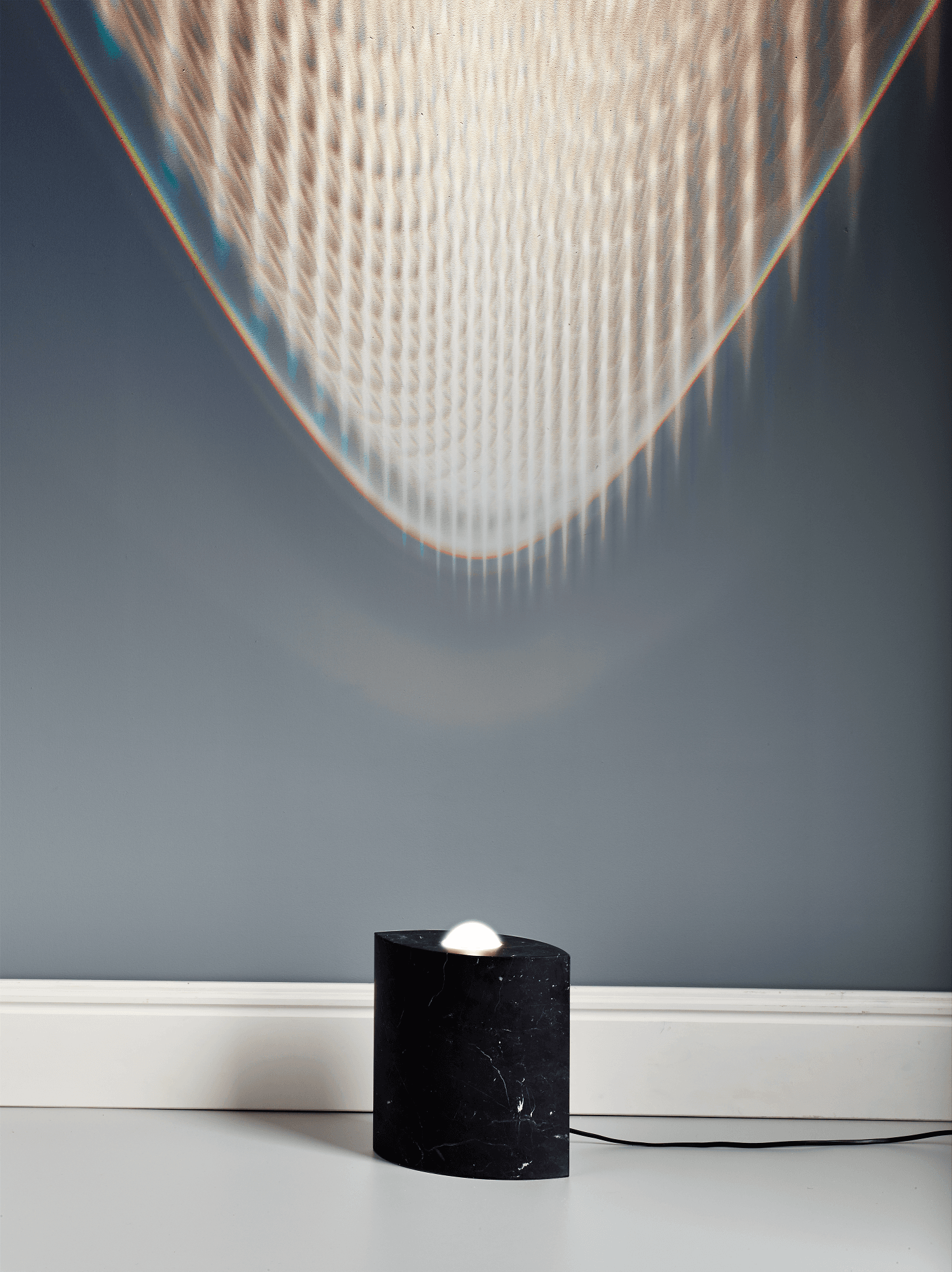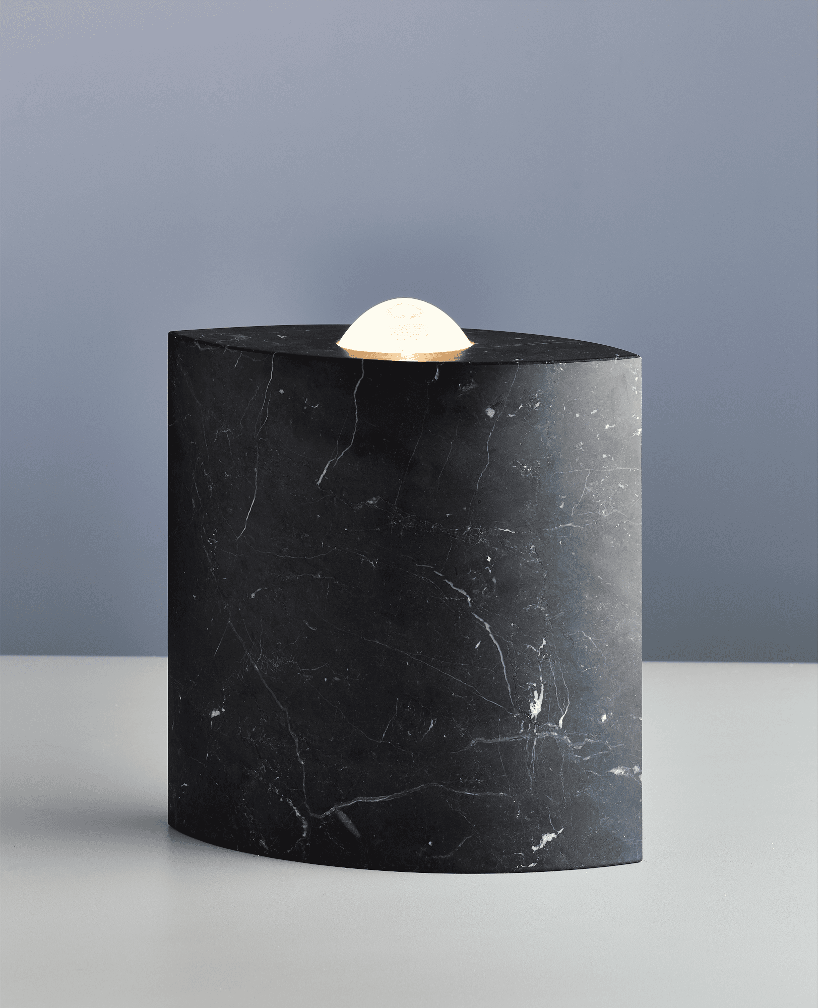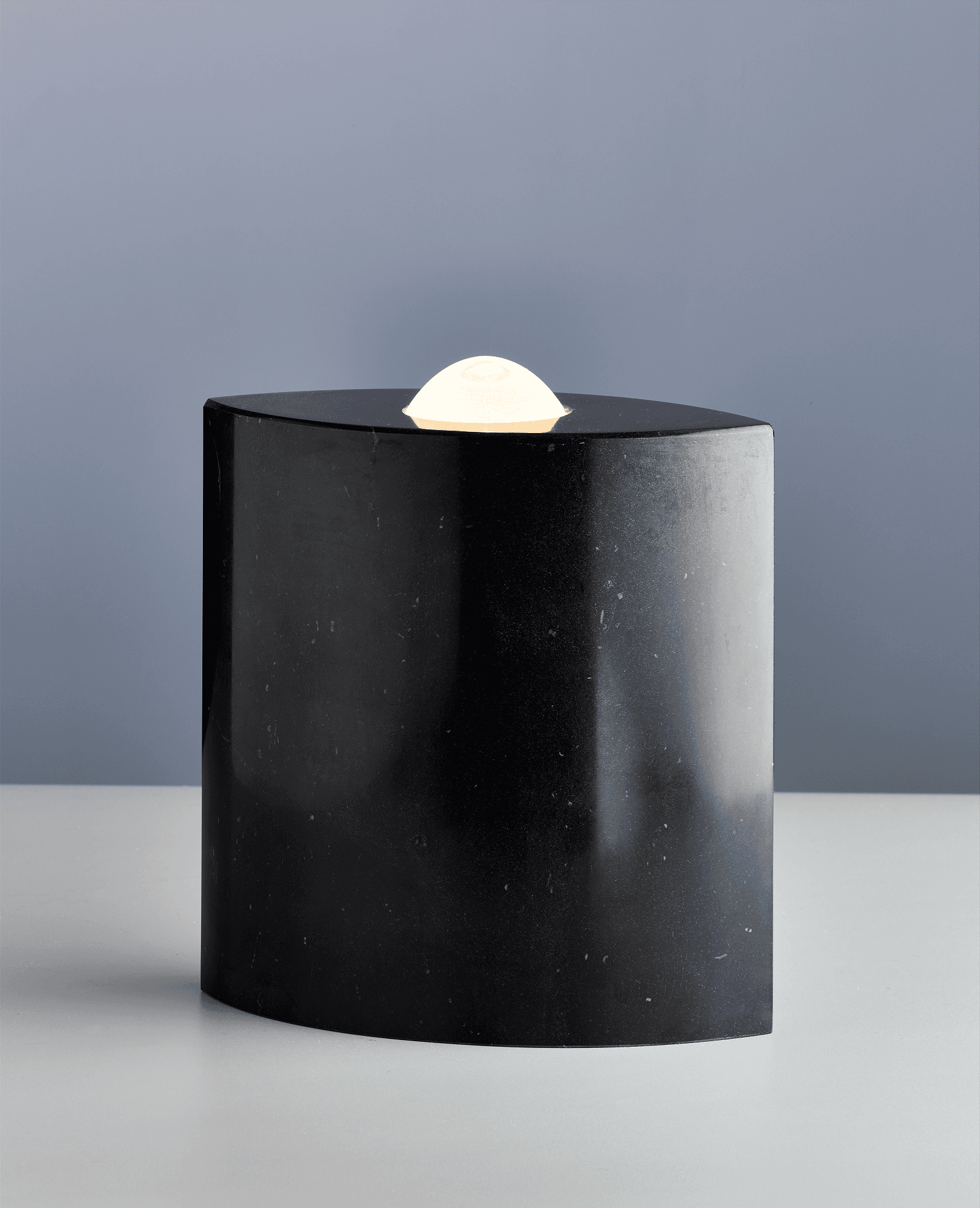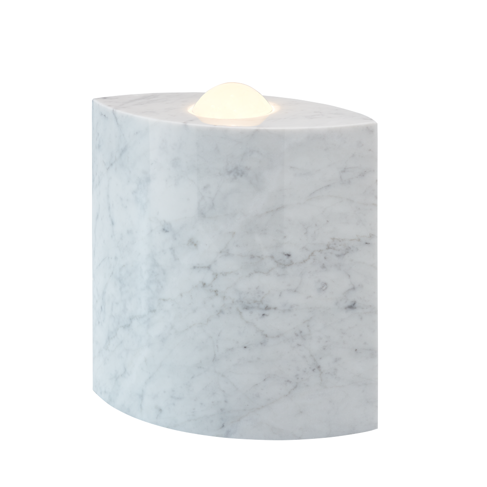 EE 86 is basically a light sculpture. Its peculiarity is instantly noticeable due to its lanceolate design and the material used – either black or white marble. From above, the 27-cm-high and 24-cm-wide lamp looks like an eye with a circular lens enthroned in the centre. The designer Günter Leuchtmann based this design from 1986 on the paintings and hieroglyphs of Egyptian civilization several thousand years ago. In ancient Egypt, the “eastern eye” was a pictorial expression for the sun disk of the sun gods, for example from Re and Aton. It was considered a symbol that could ward off all harm.
