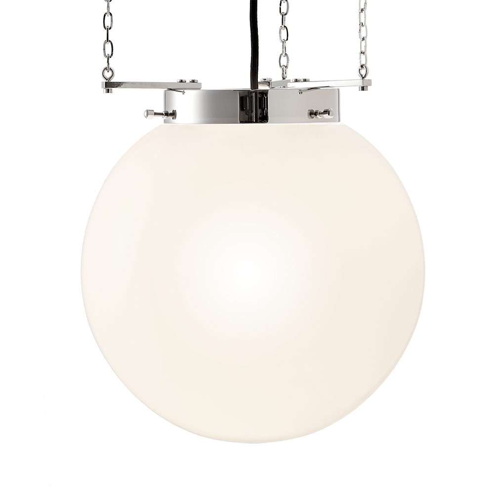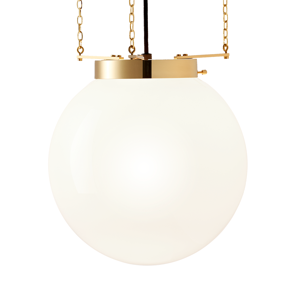 When this lamp was designed by Marianne Brandt back in 1928, it proved so popular that it was approved for mass production. This classically unassuming Bauhaus lamp is available in four sizes. We also offer an alternative model with a mount and chain made of polished and varnished brass.