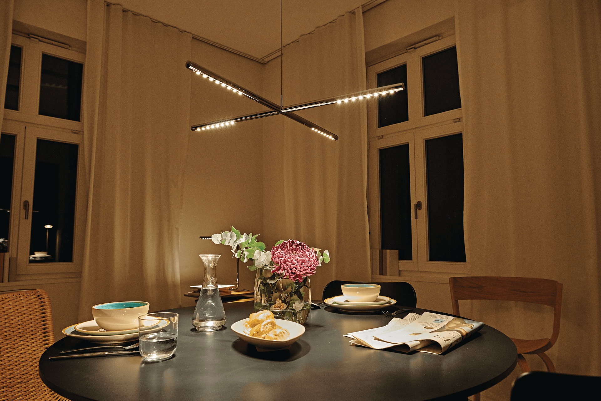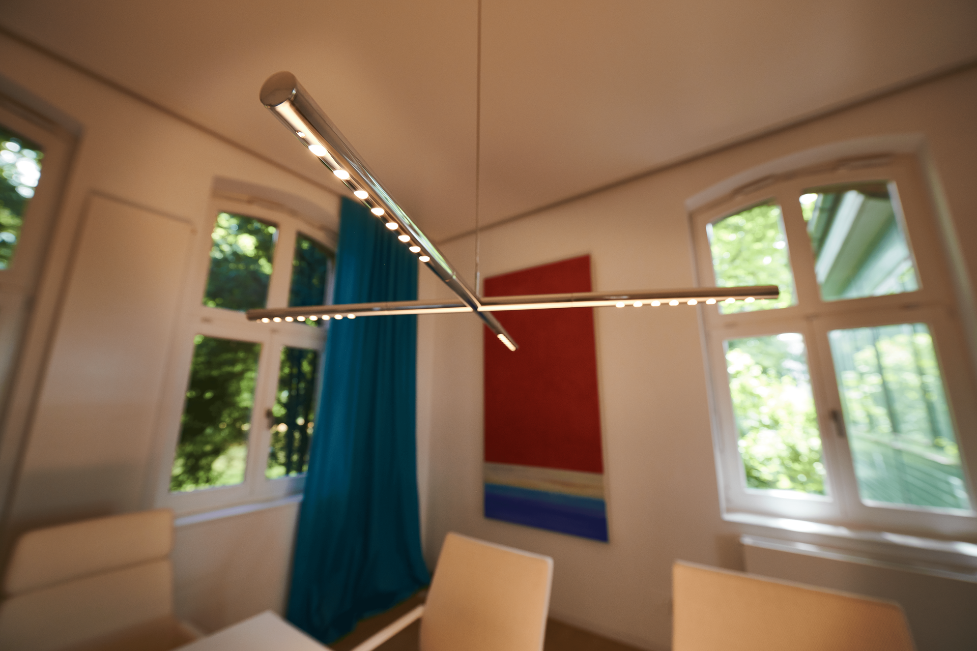 Our LUM pendant lights in their standard version are best suited for rooms with a maximum height of 300 cm. For higher ceilings (over 300 cm), we ask for a corresponding request. These lights can be extended for an extra charge based on the order.