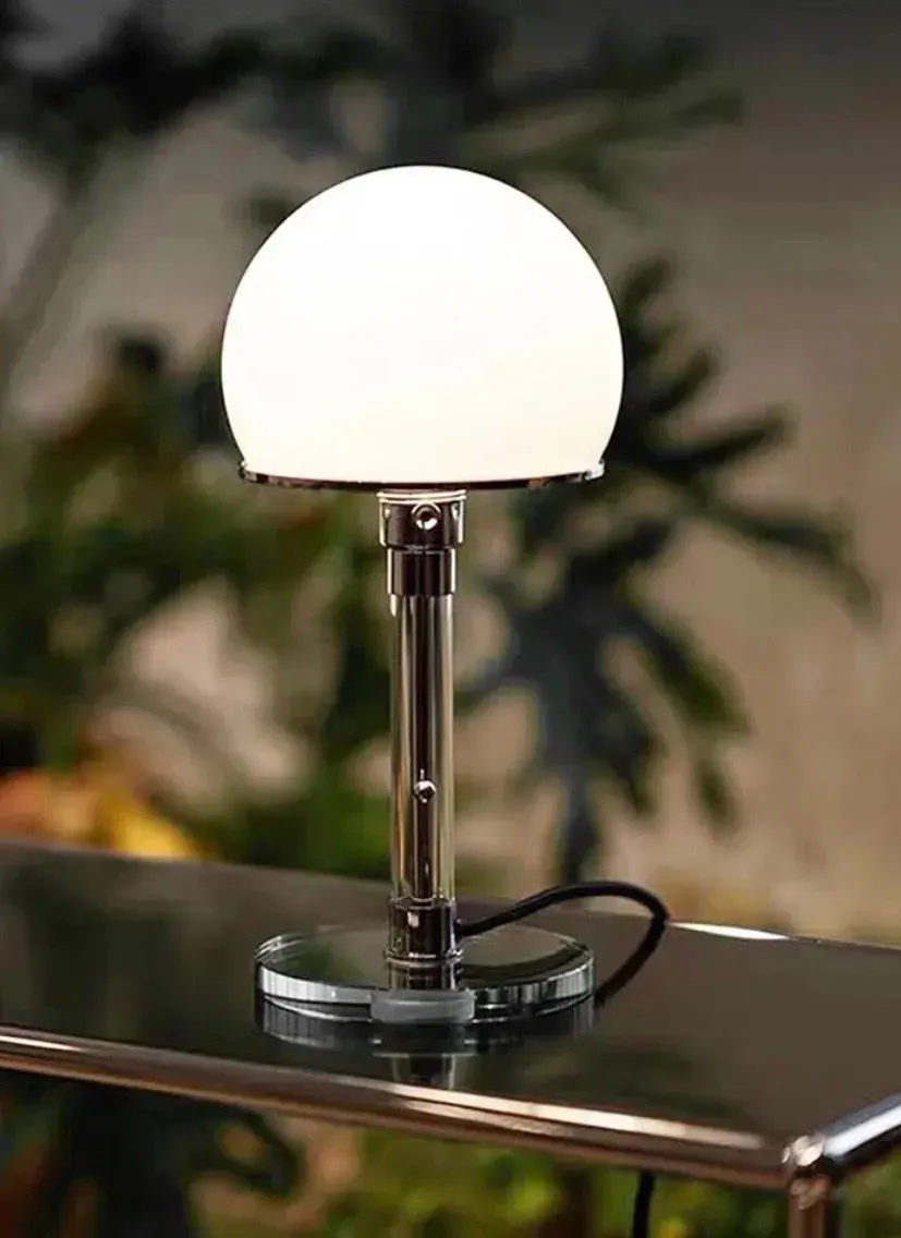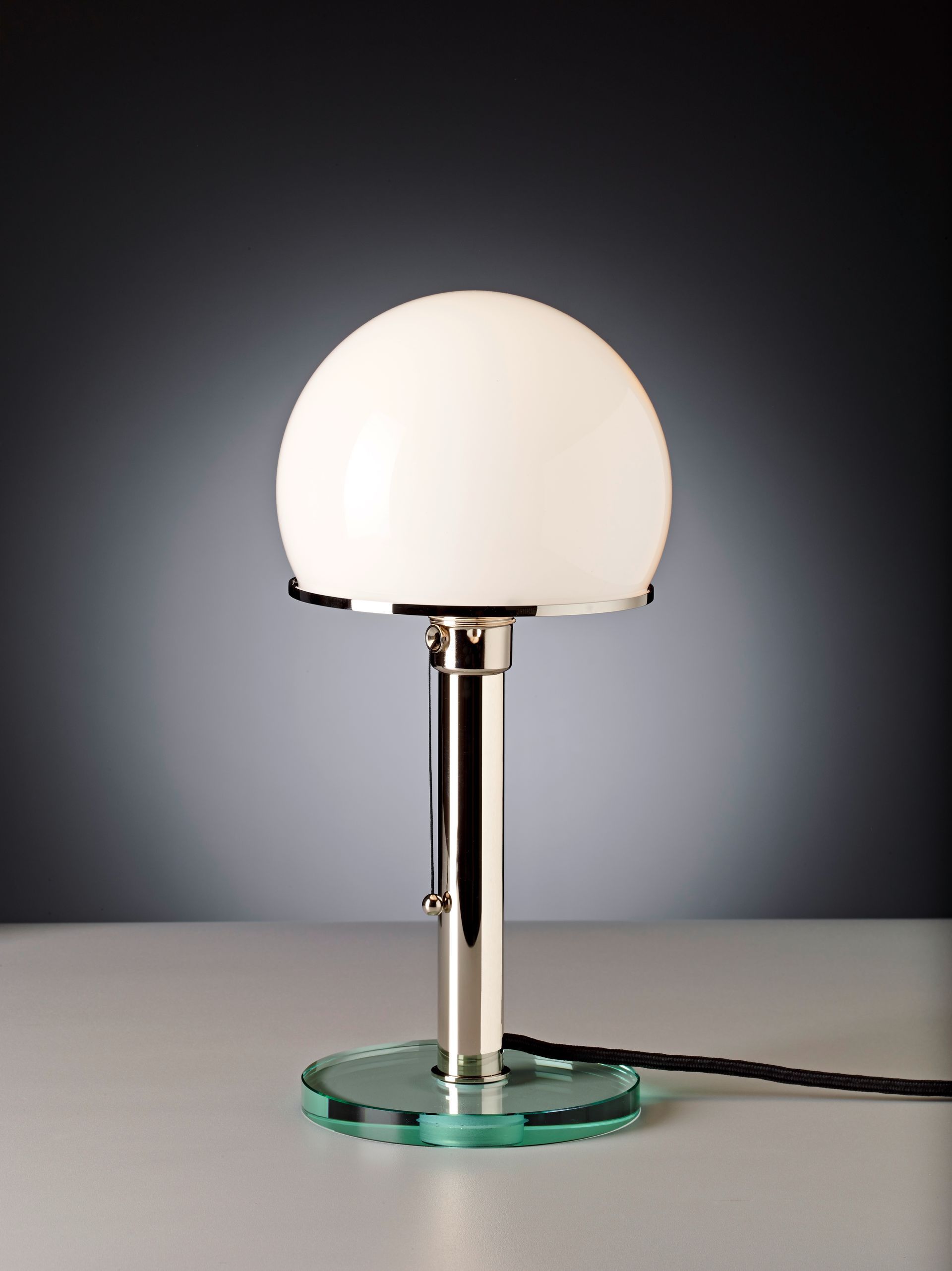 The WG 25 GL is one of four versions of the famous Bauhaus table lamp designed by Wilhelm Wagenfeld between the years 1923 and 1925. TECNOLUMEN is the only company authorised by the designer to reproduce his copyrighted classic. WG 25 GL stands out for its characteristic lamp head, proud metal column and exquisite glass base.