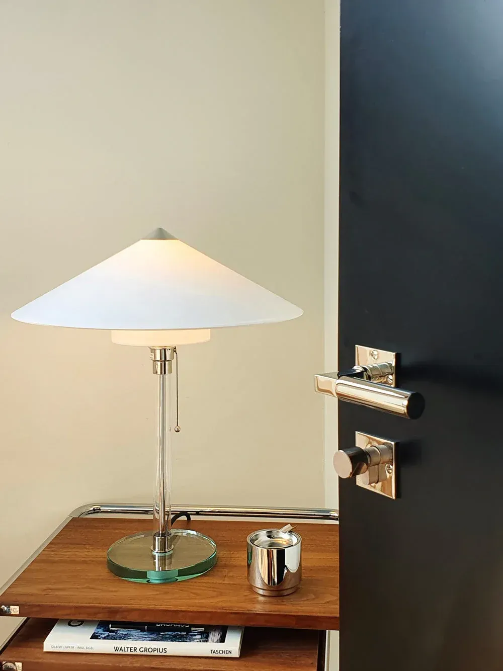 Wilhelm Wagenfeld created these floor and table lamps with fabric shades during his time at the Bauhaus School. The aesthetic similarity to the table lamps created at the Bauhaus reveals Wagenfeld’s constant experimentation and his search for the final design that is often found before the actual end of the development.