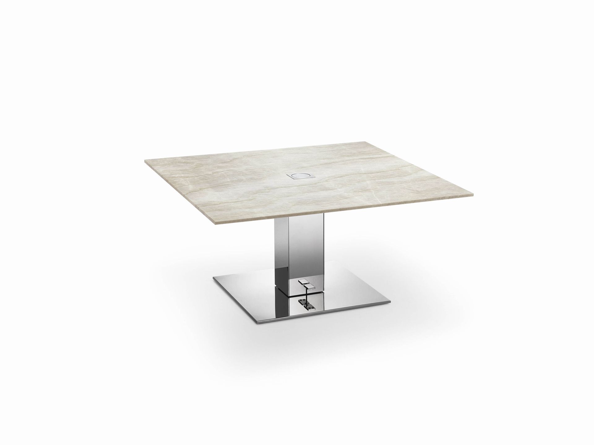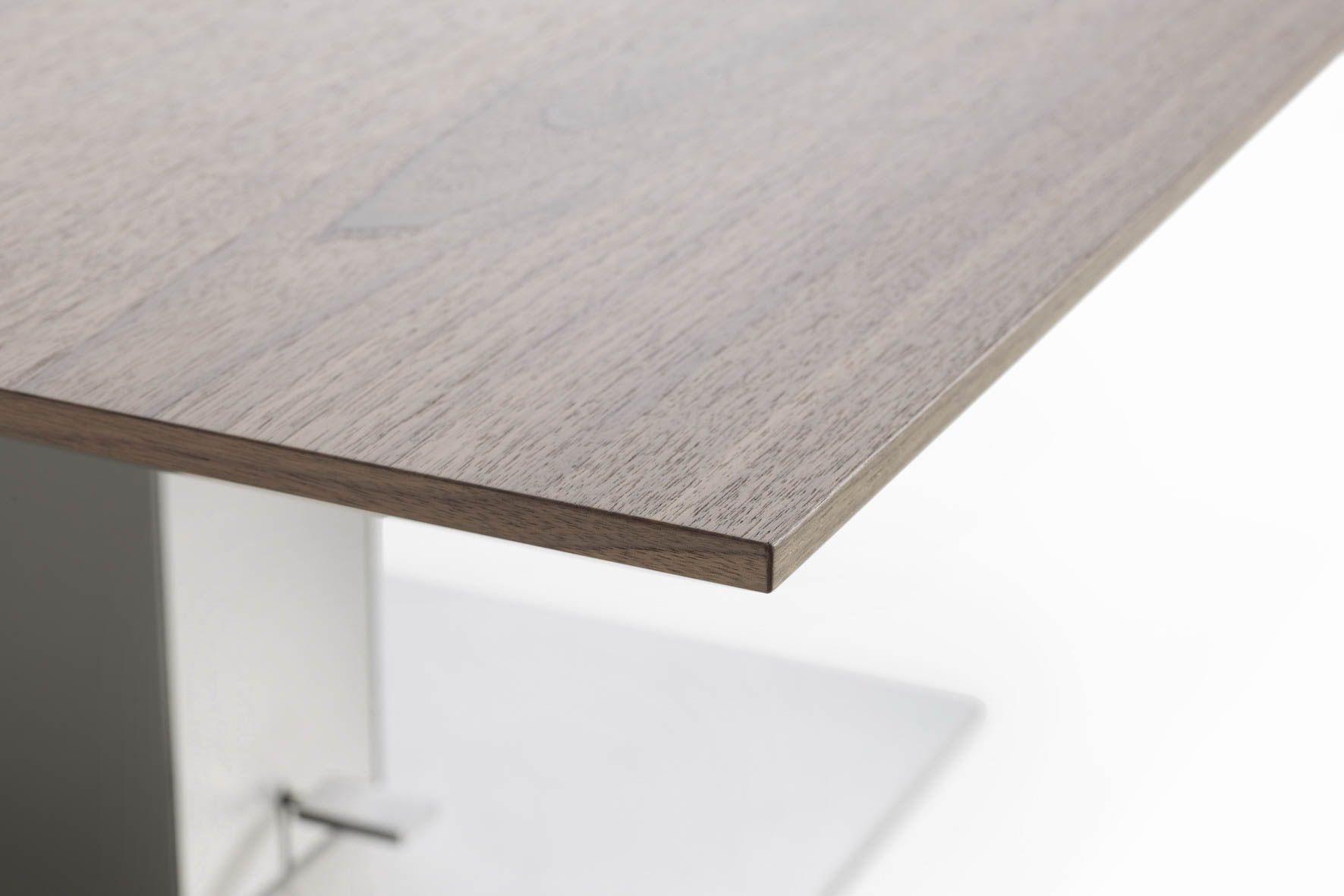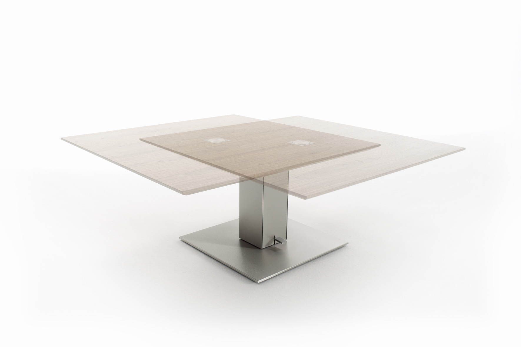 The height can be adjusted via a gas pressure spring. In addition, the top can be moved horizontally by 30 cm in any direction, so that sitting across corners is also possible in comfort.