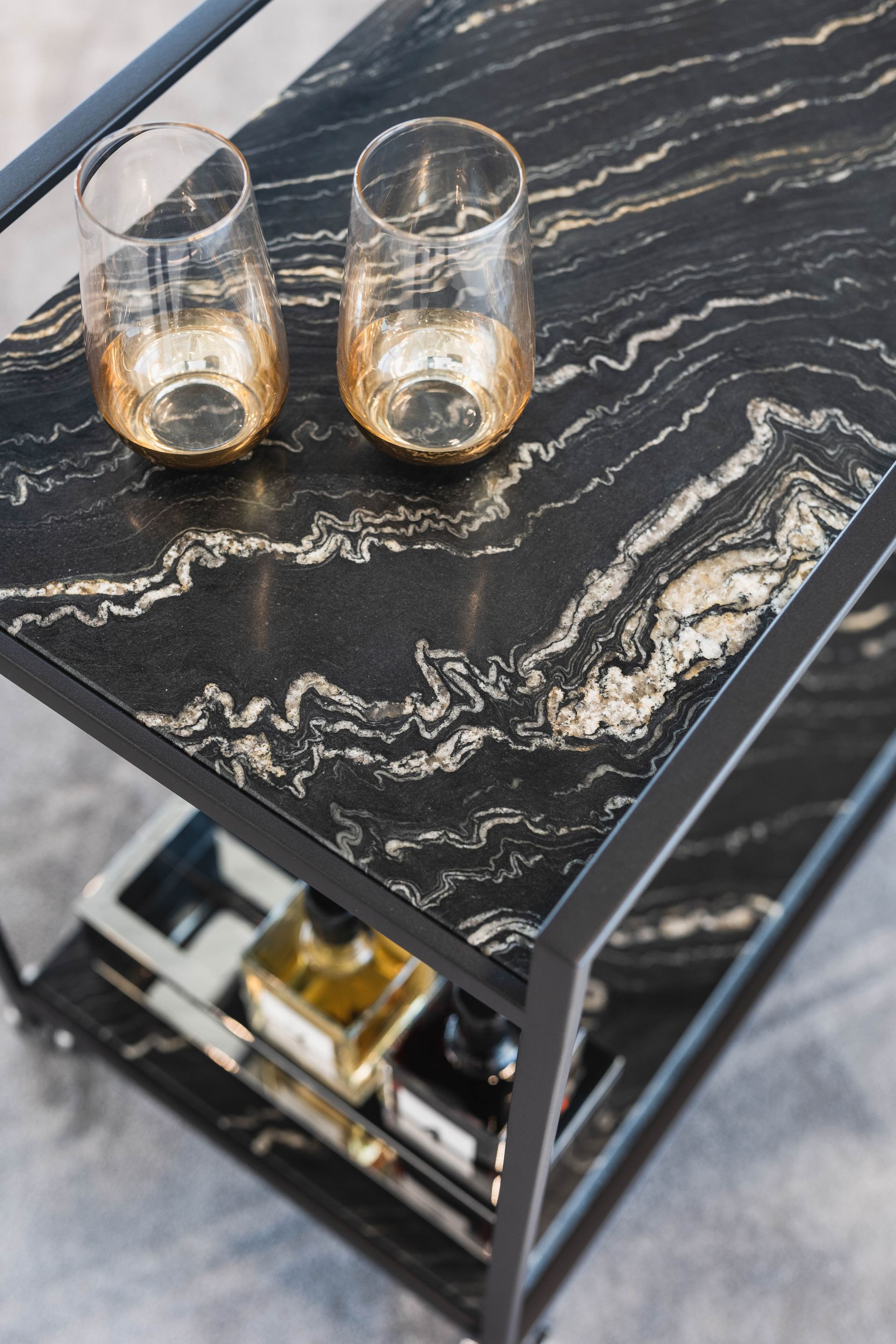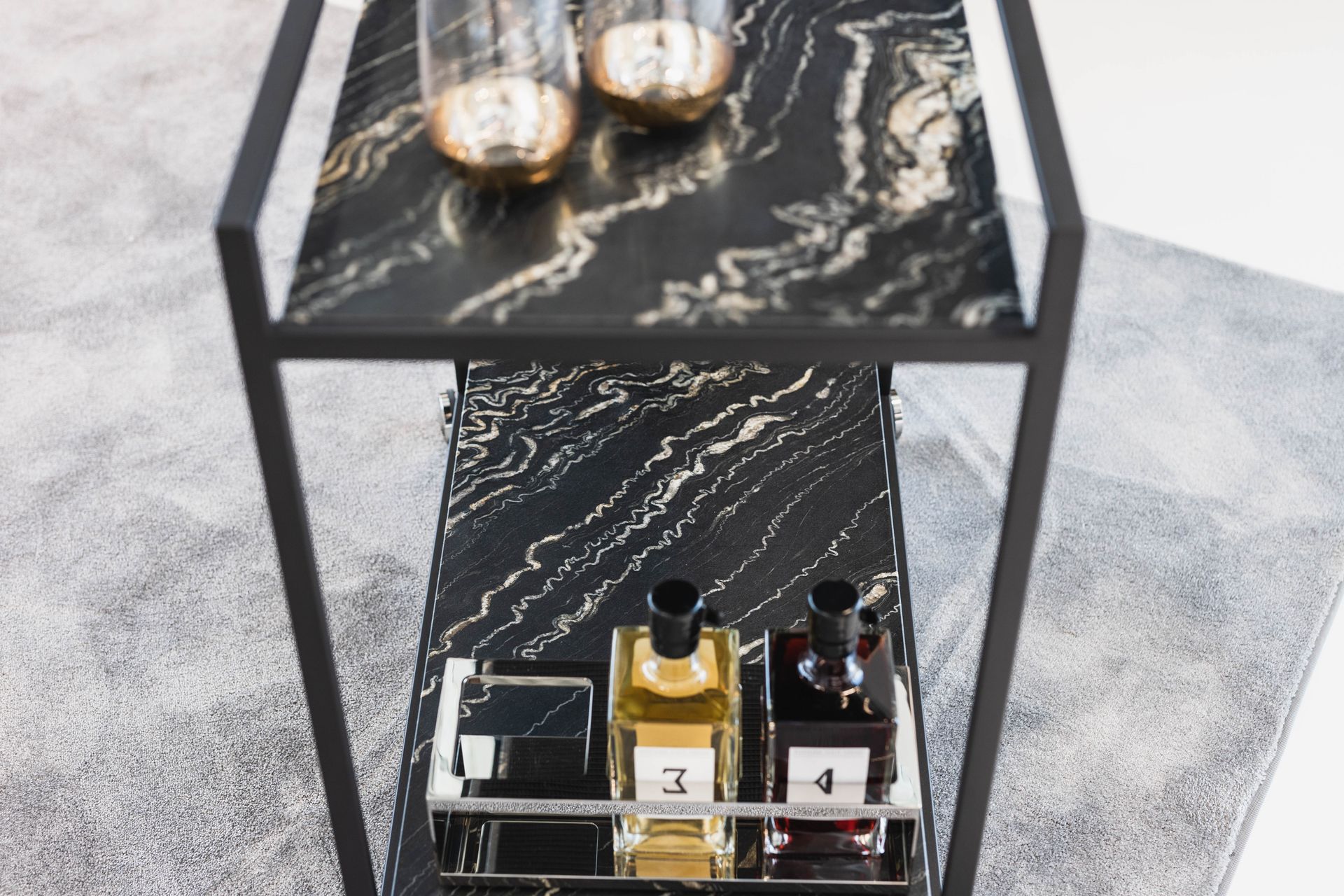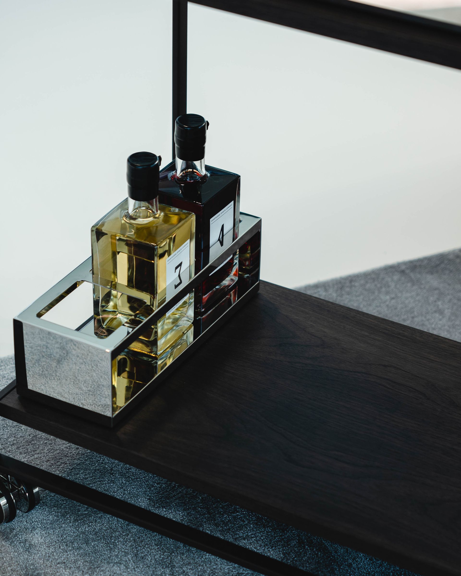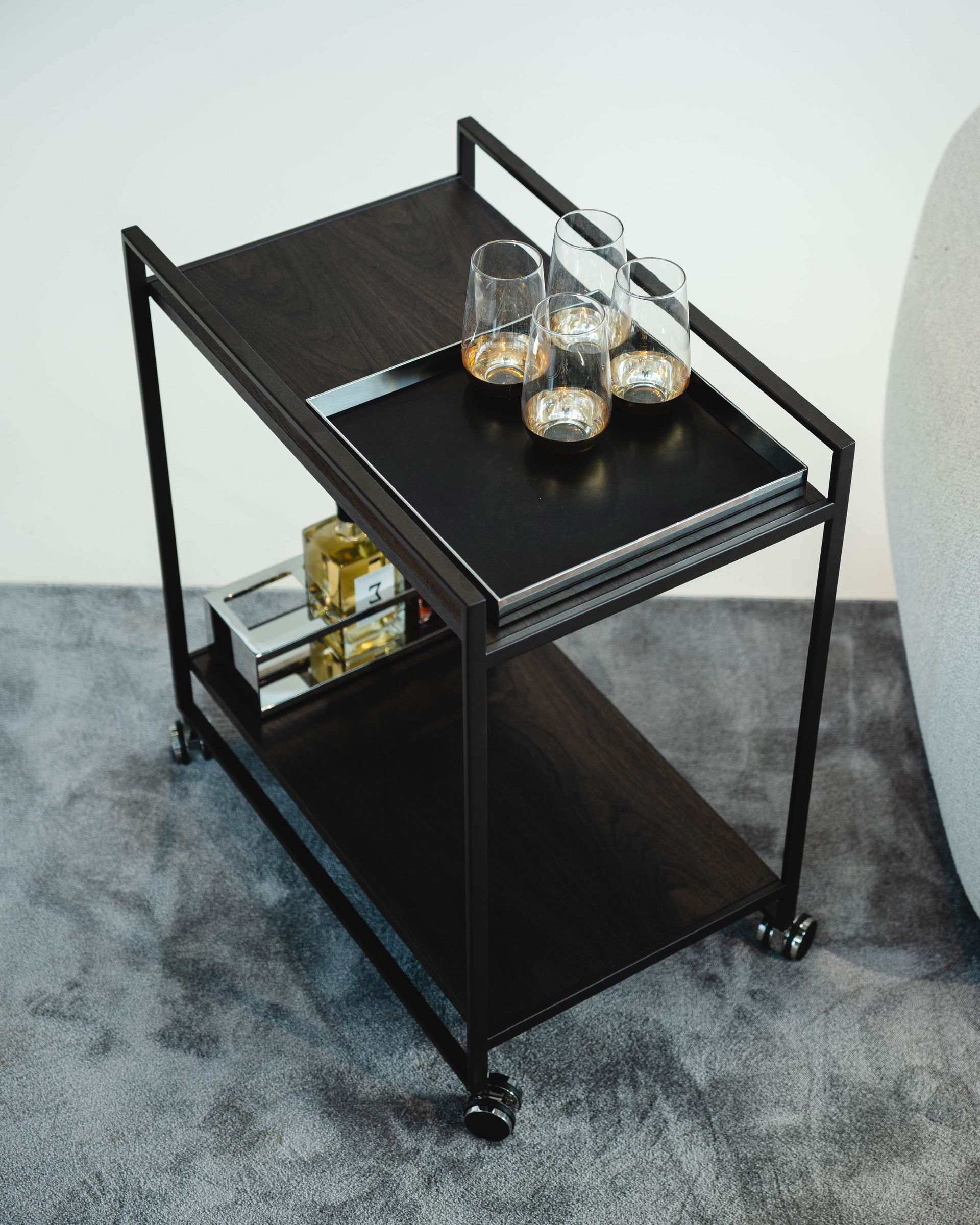 Useful additions such as a practical bottle holder and a stainless steel tray in two sizes make this chic serving trolley absolutely suitable for everyday use and also a real eye-catcher.