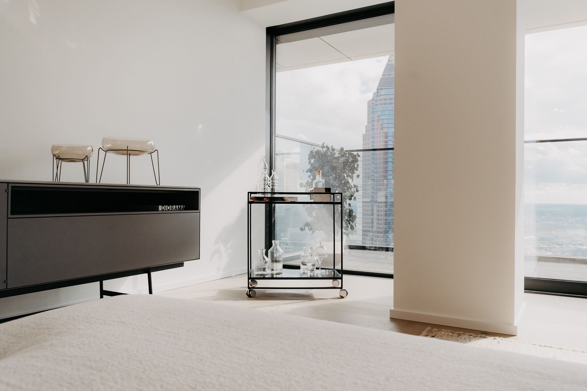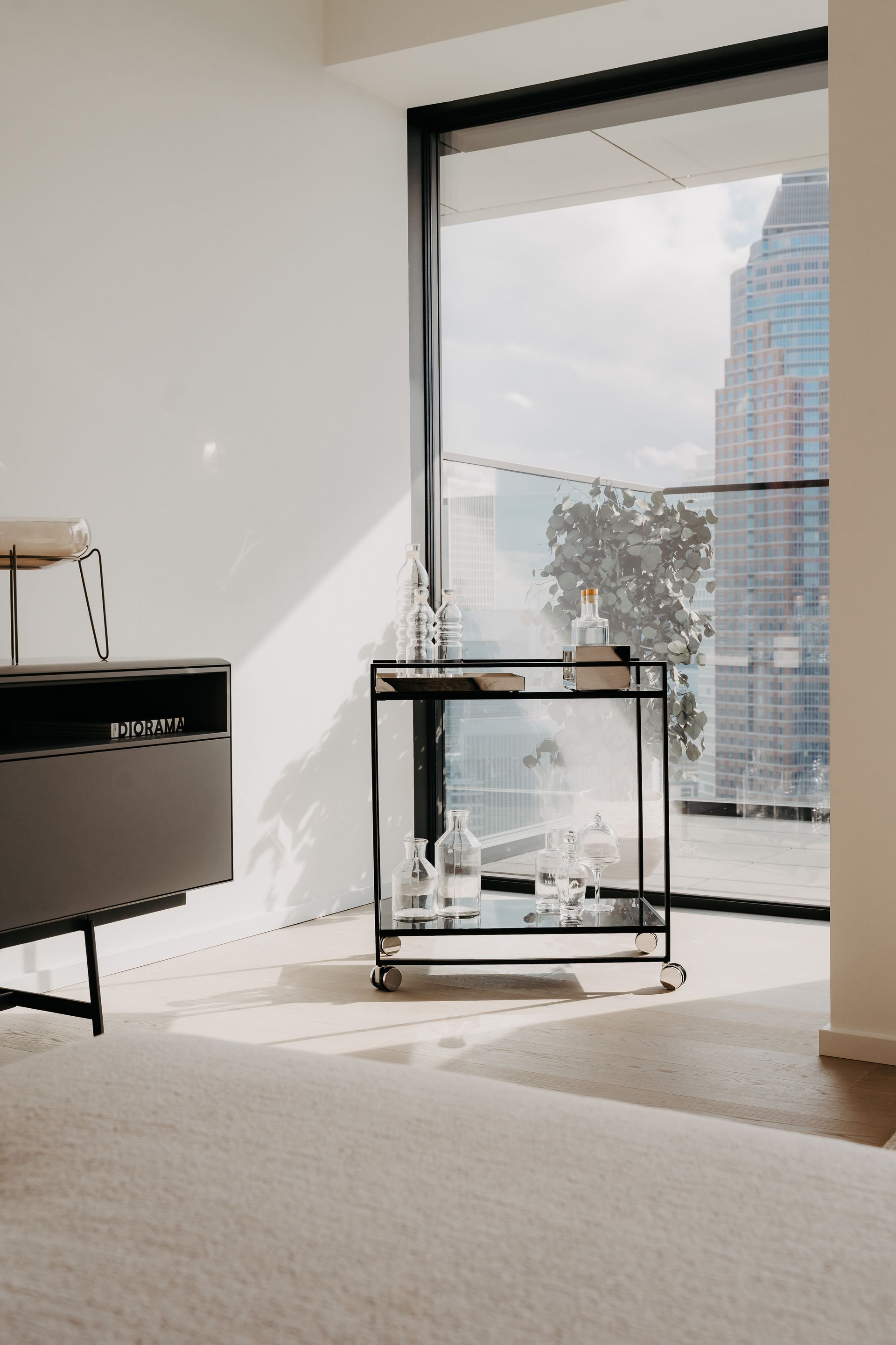 This is function in design, which is the hallmark of the Yomei collection. Surfaces such as veneer, high-gloss lacquer and leather as well as fine details give the serving trolley its exclusive character. Thanks to its simple, reduced form, FLAT cuts a fine figure in the kitchen, living room and also in the study.