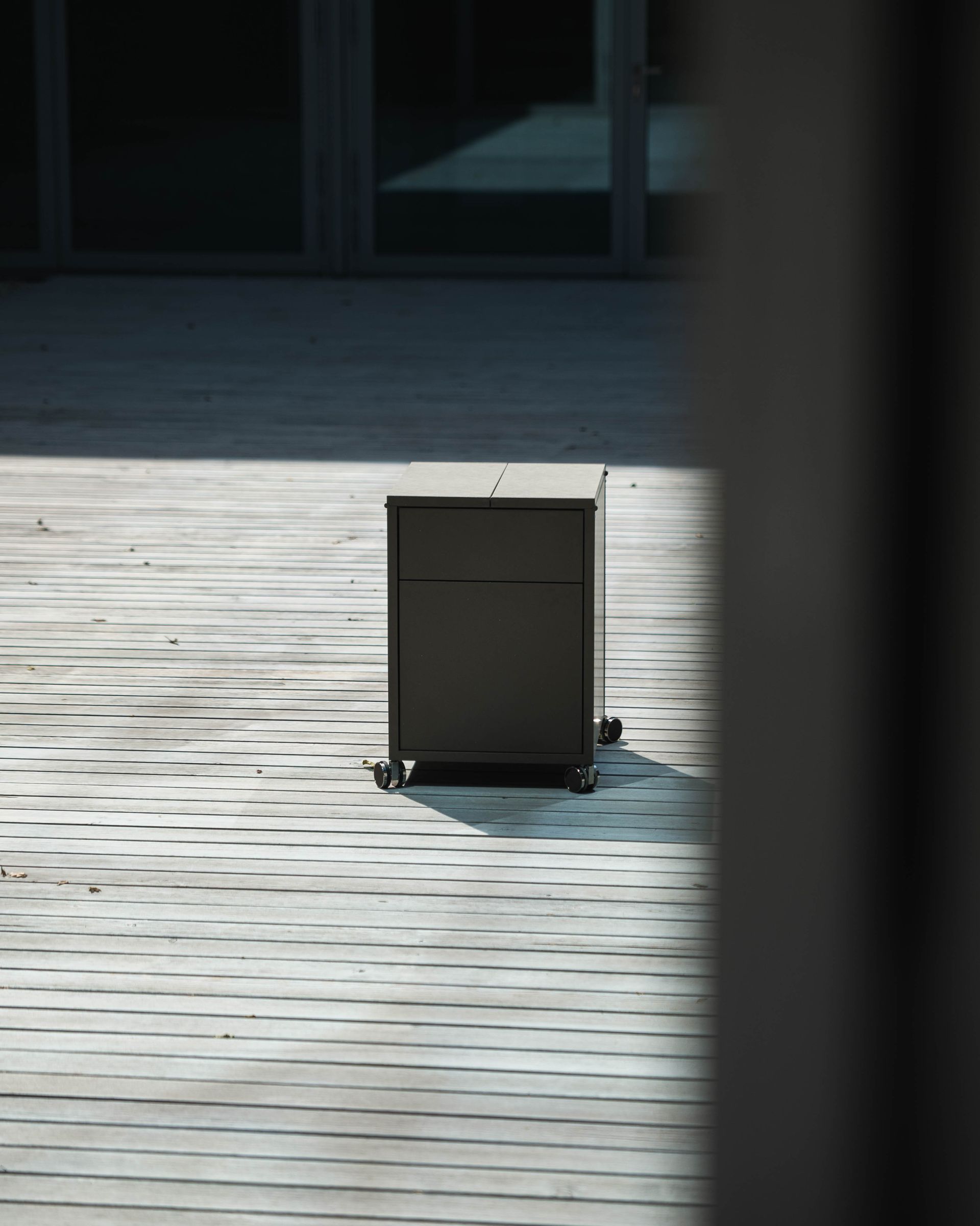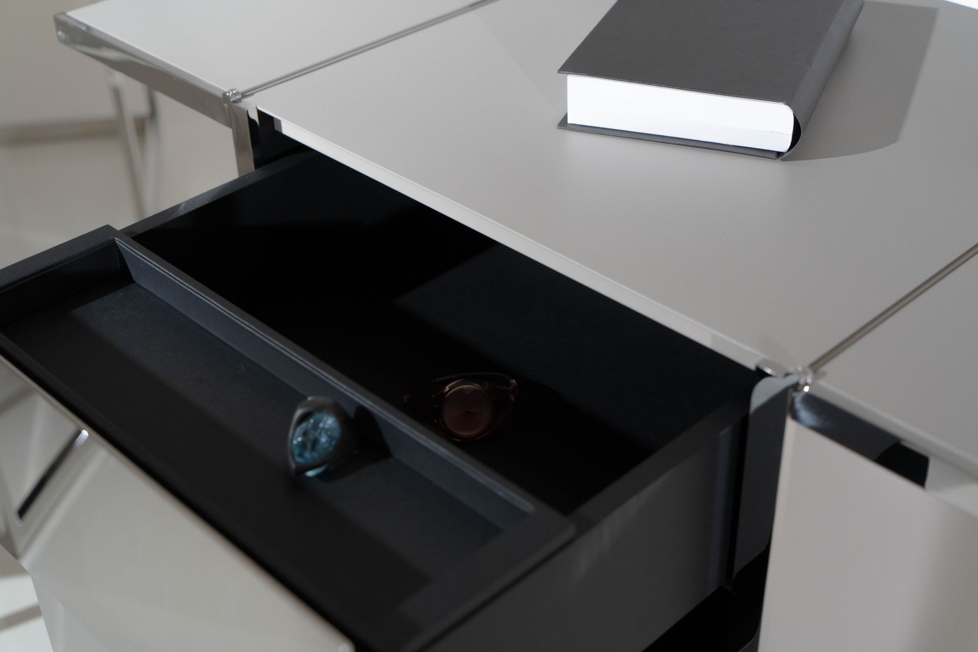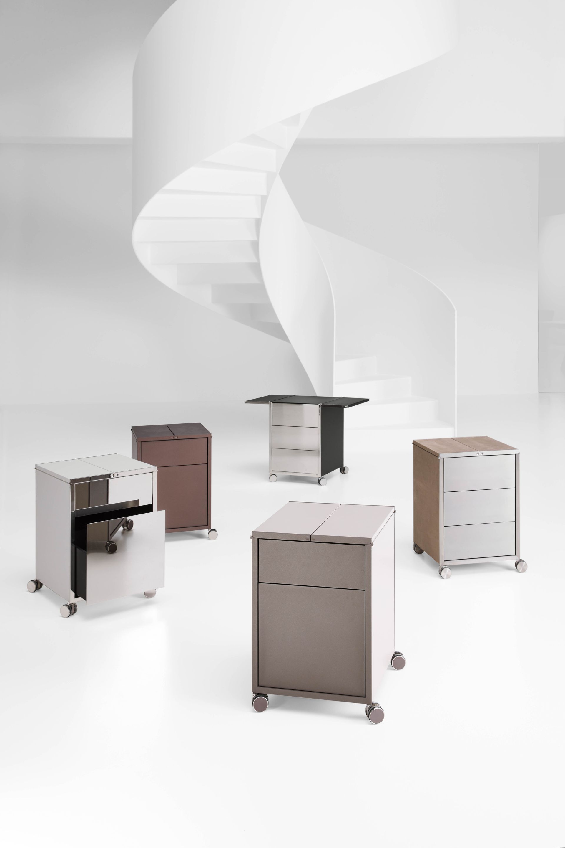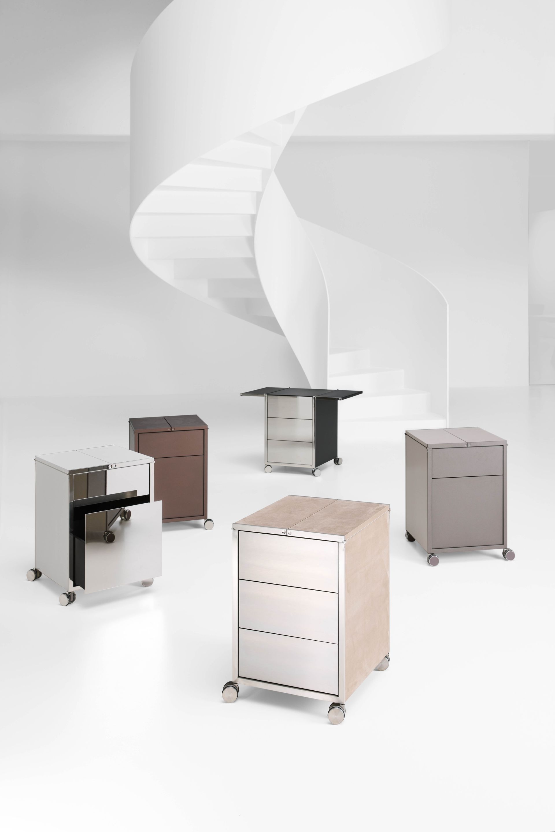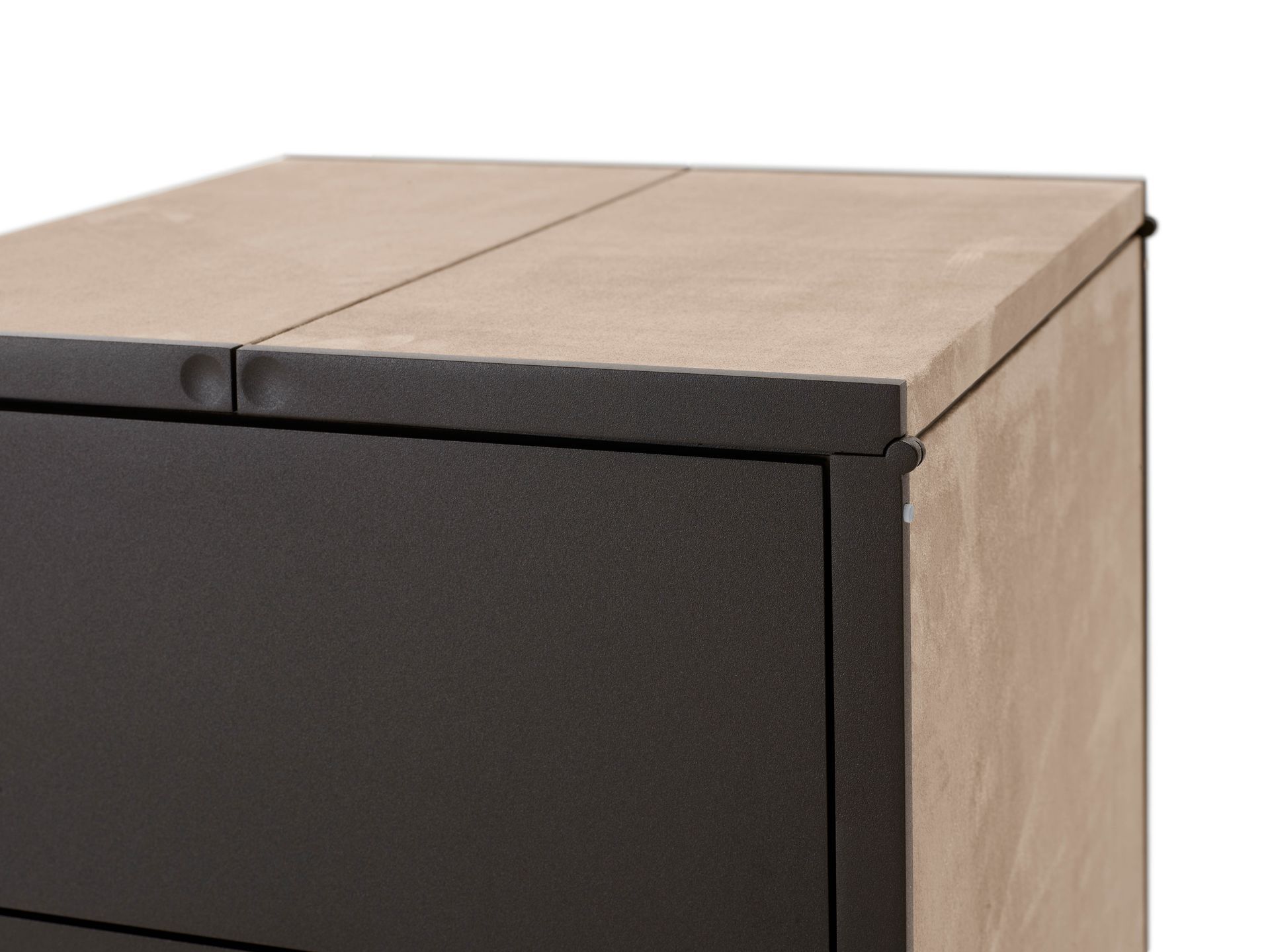The drawers open with light pressure. Due to this look without handles, the clear line is also reflected in the front. Alternatively, the container is also available with 3 drawers.