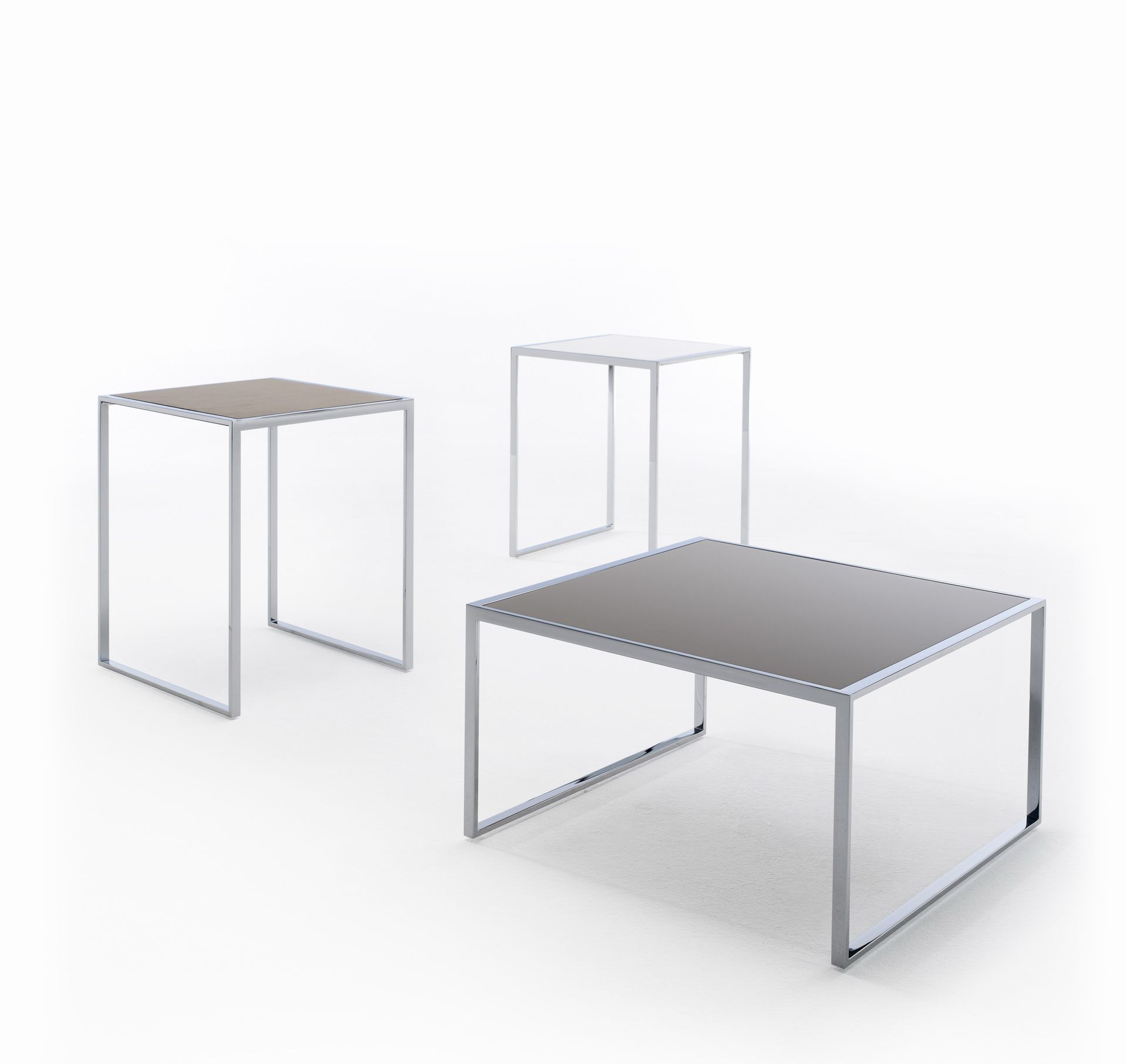 5 different sizes and 32 different surfaces and colors offer a solution for almost any living situation. Materials such as leather, high-gloss lacquer or Makassar veneer underline the value of this table.