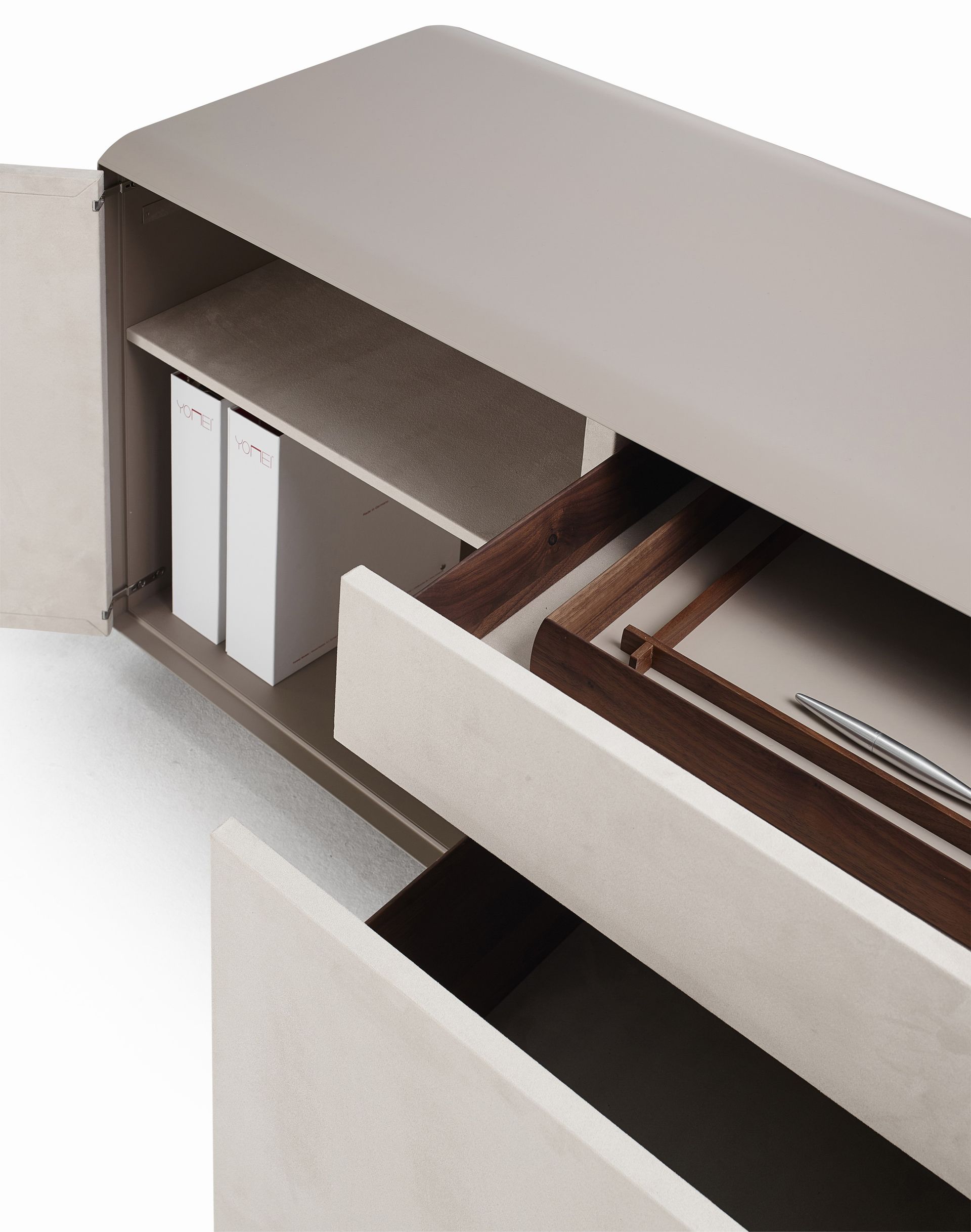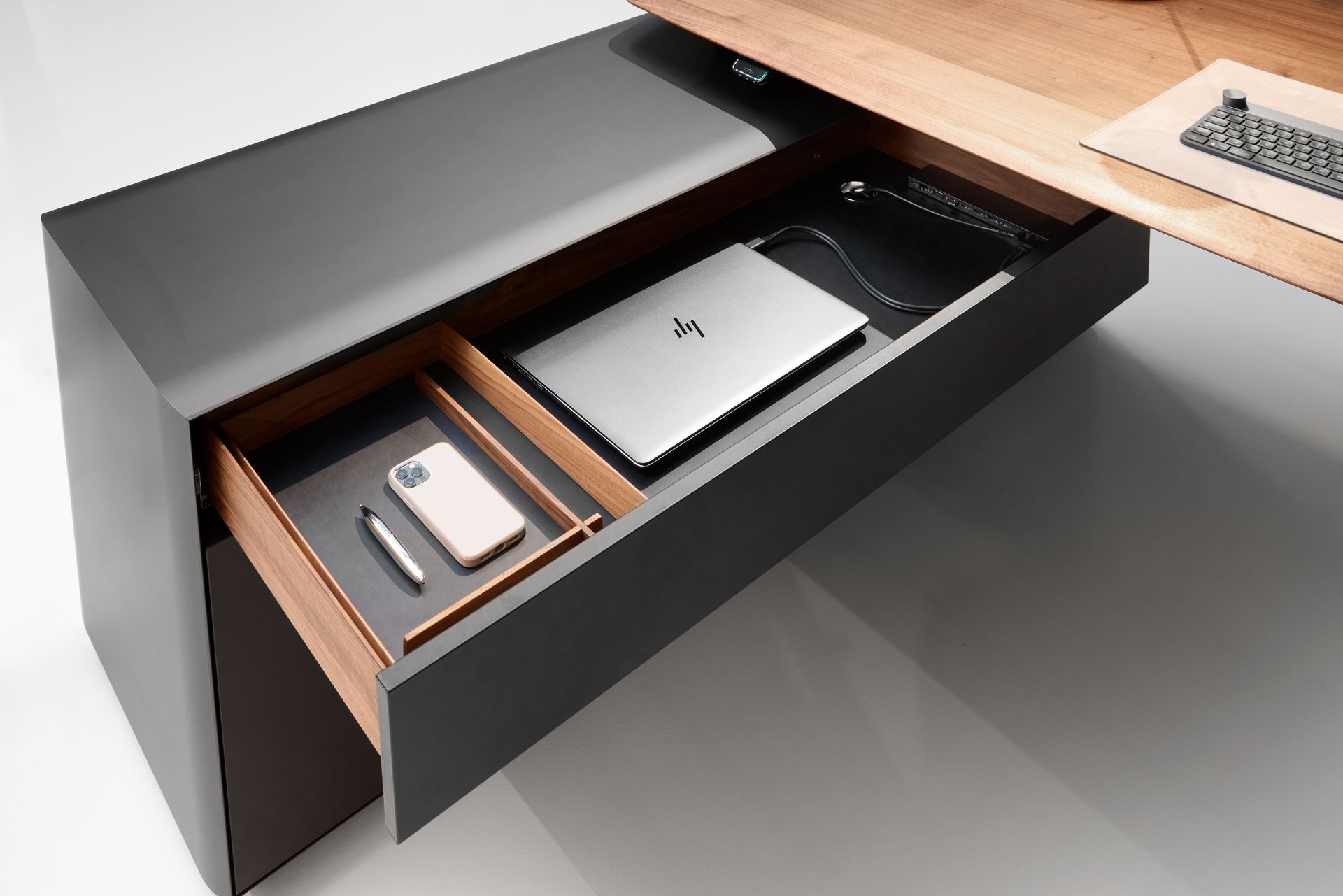 The S100 Desk extends the successful S100 collection with a professional desk of the luxury class. Its noble design and the many highly sophisticated details make the electrically height-adjustable desk a true masterpiece.