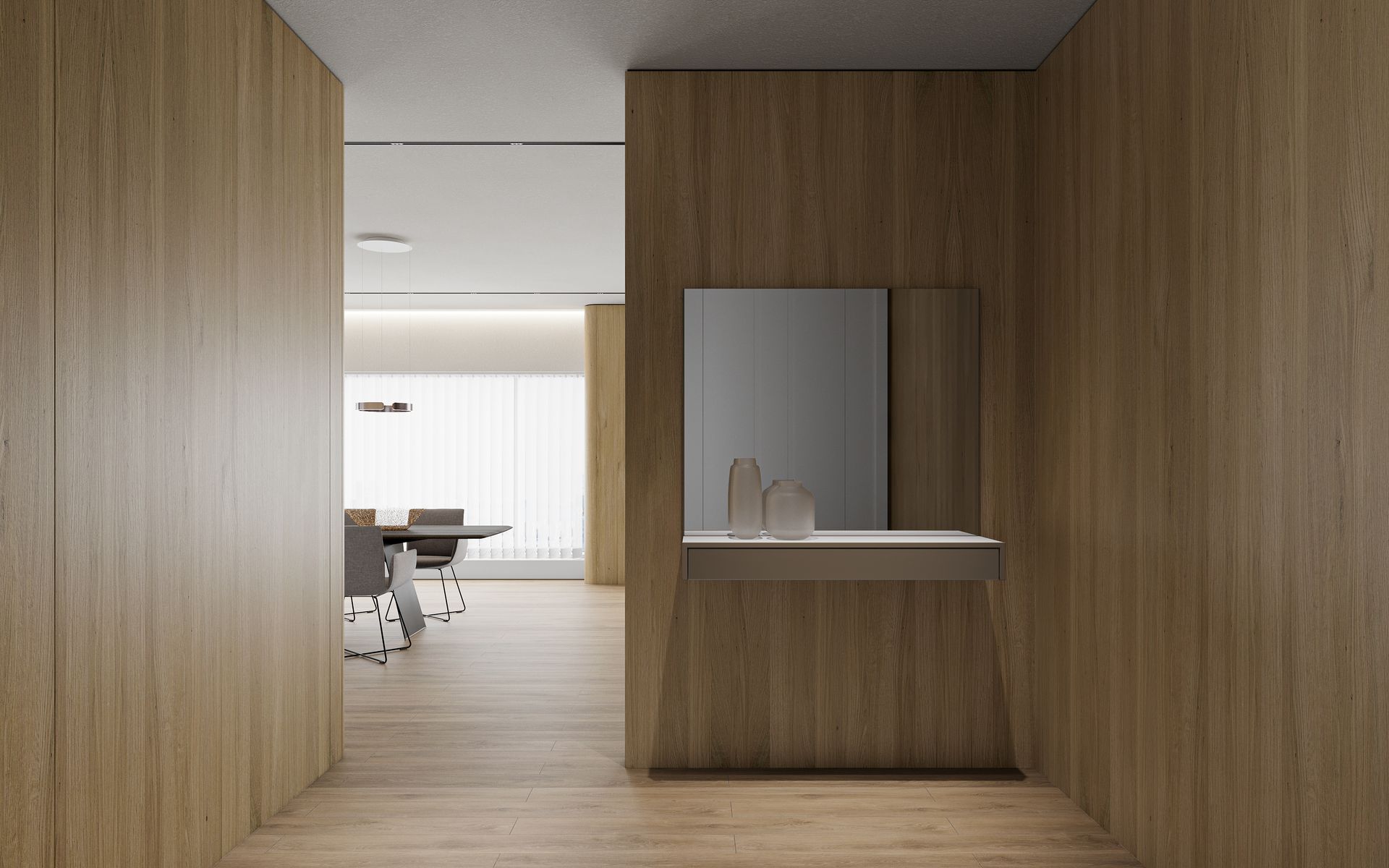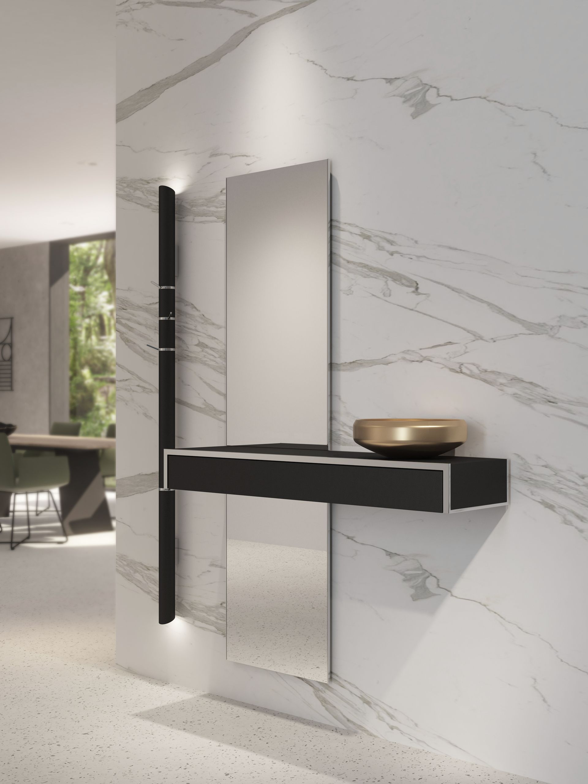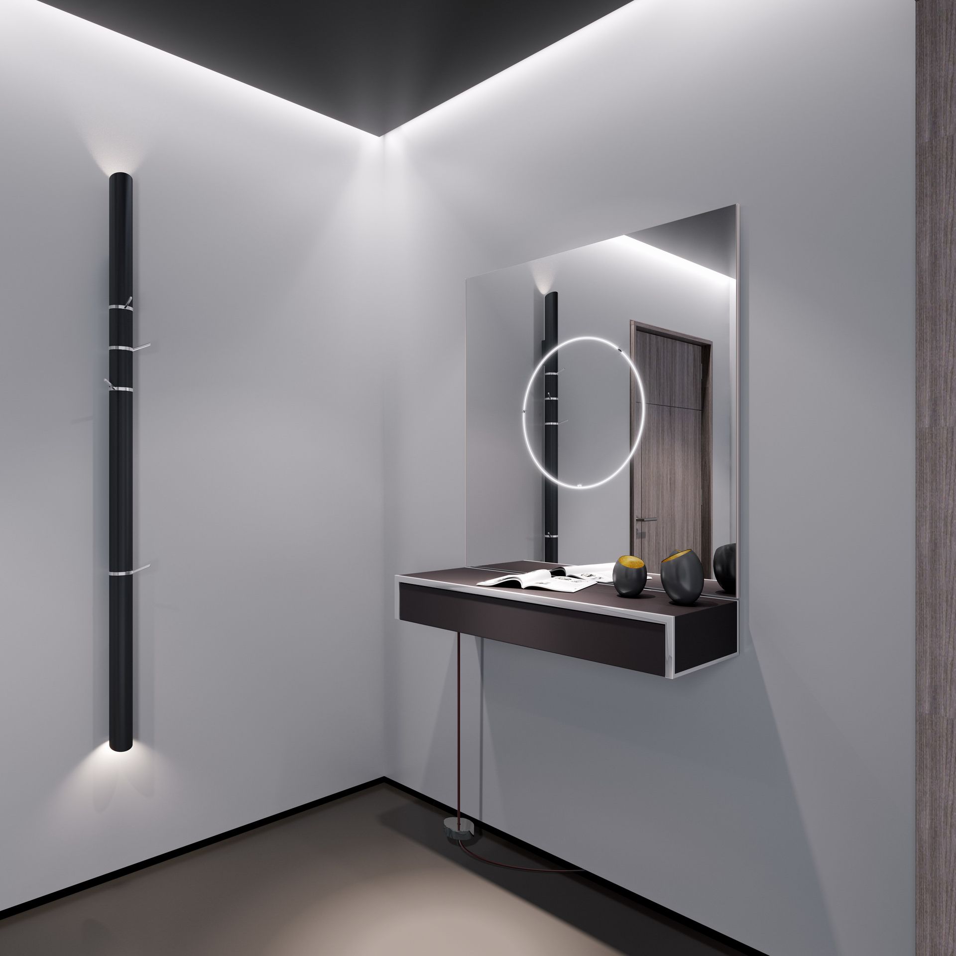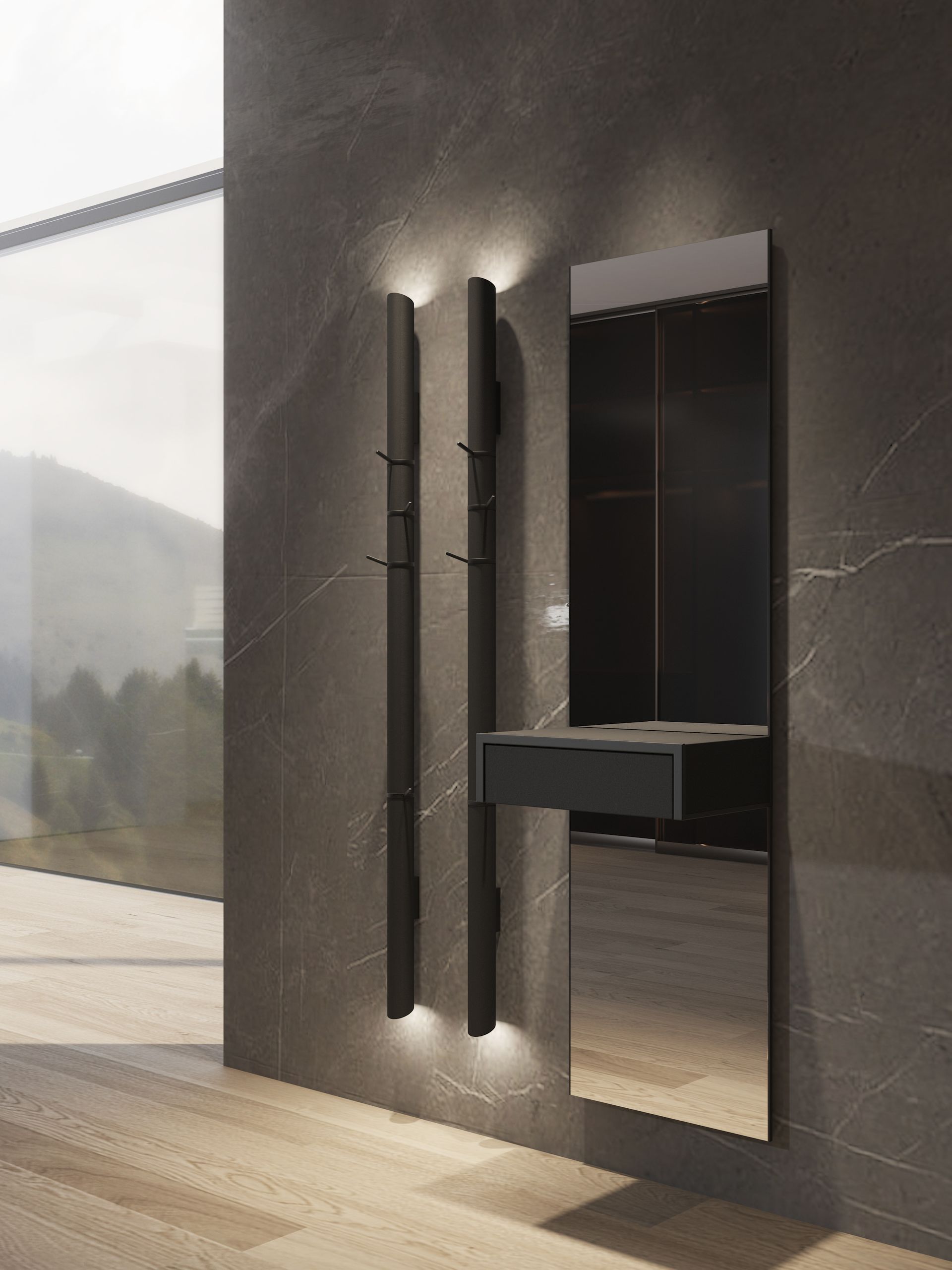 The beauty of Yomei products like the smart console wall-mounted: they create free space. So the floating brother of our 2012 celebrated console at imm cologne also provides clarity in the hallway and wardrobe area. Nothing obstructs the view. The entrance radiates calm. This is ensured on the one hand by the filigree design with the reduced depth of only 32 cm as well as the intelligent storage solution of the Yomei wall console.
