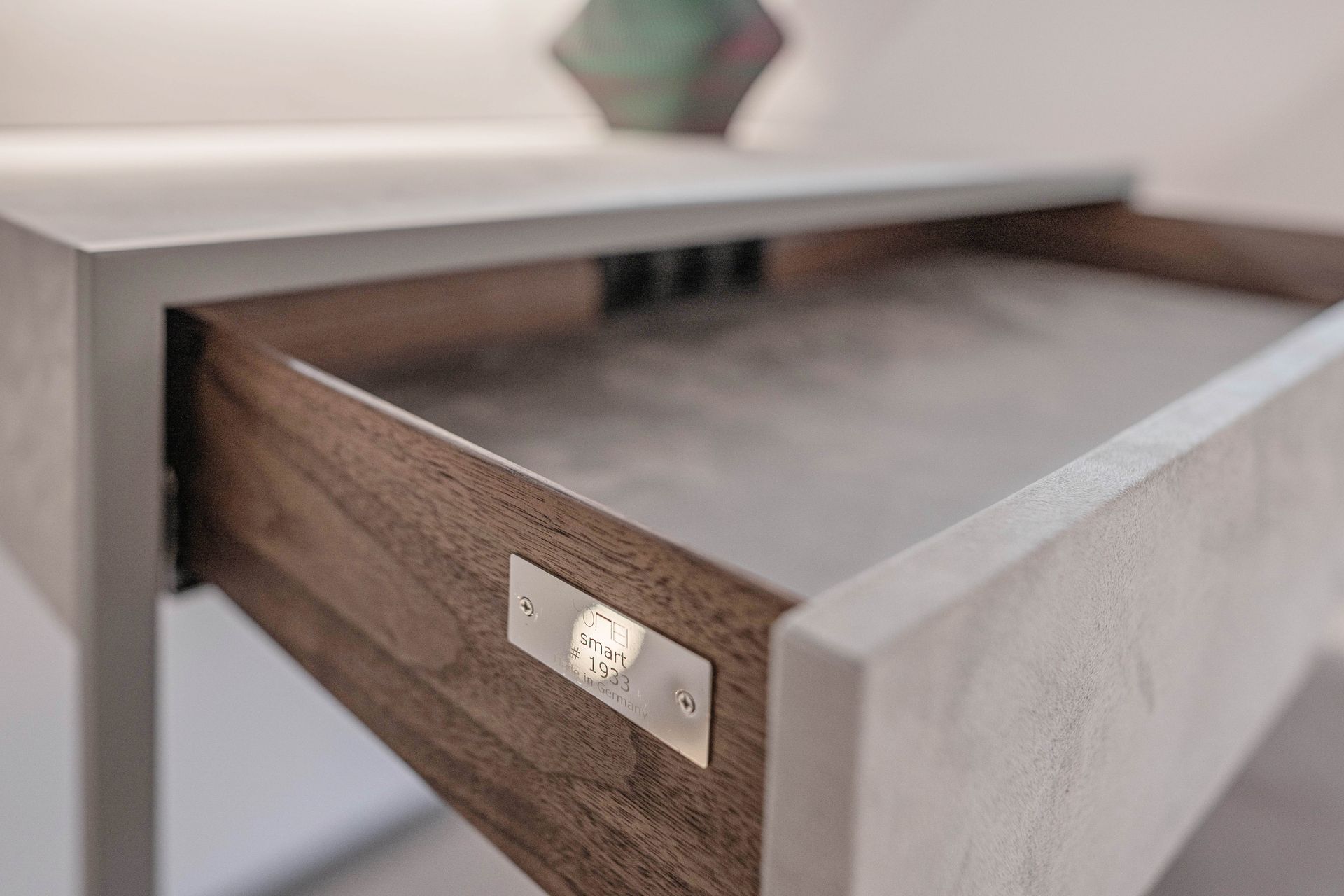 This desk brings everything a modern, contemporary home office needs. Slim dimensions, ample storage space and perfect "electronic" supply of all devices and lights. Everything is elegantly hidden in the large drawer or under the console. Cell phones, iPads, laptops and lights can be powered at the same time.