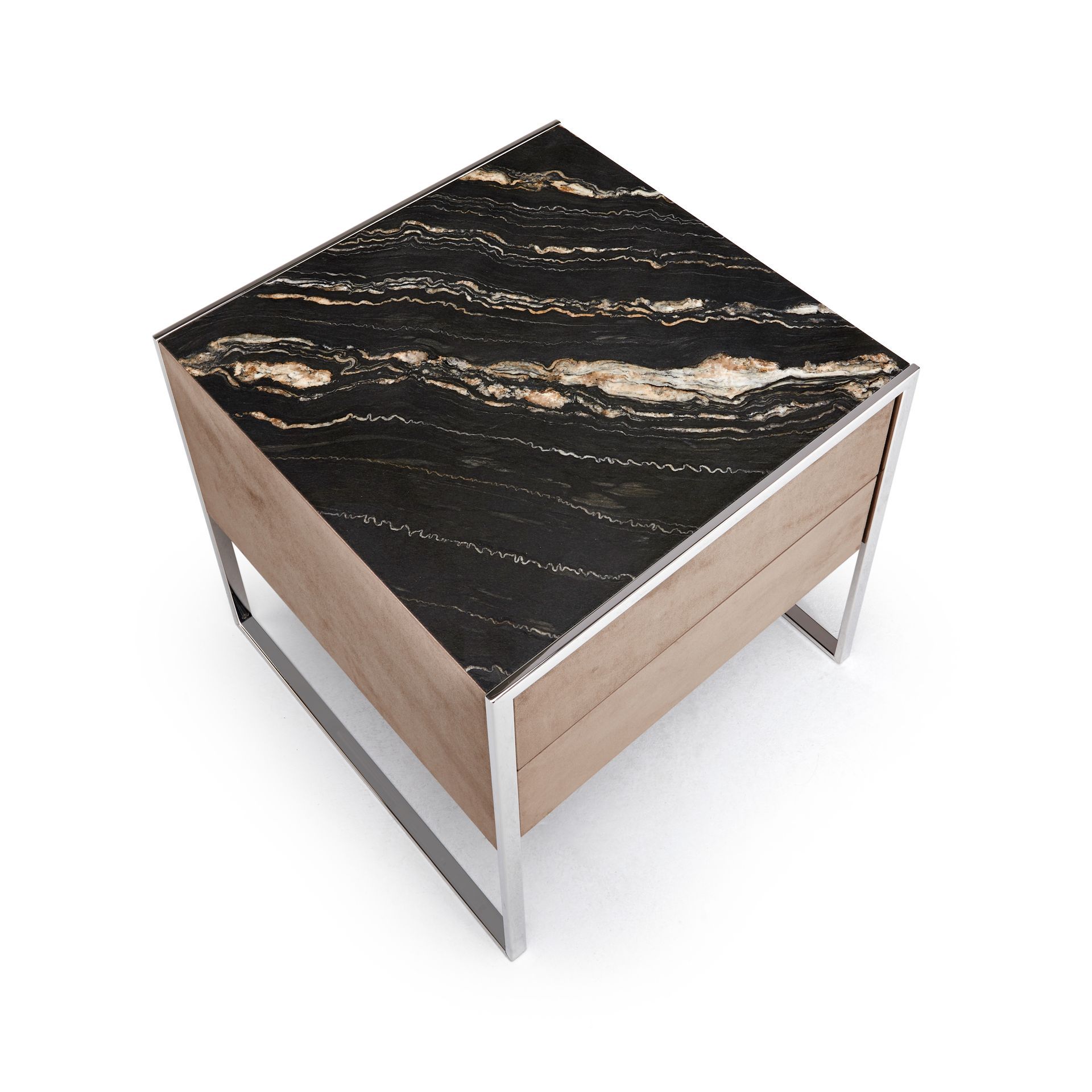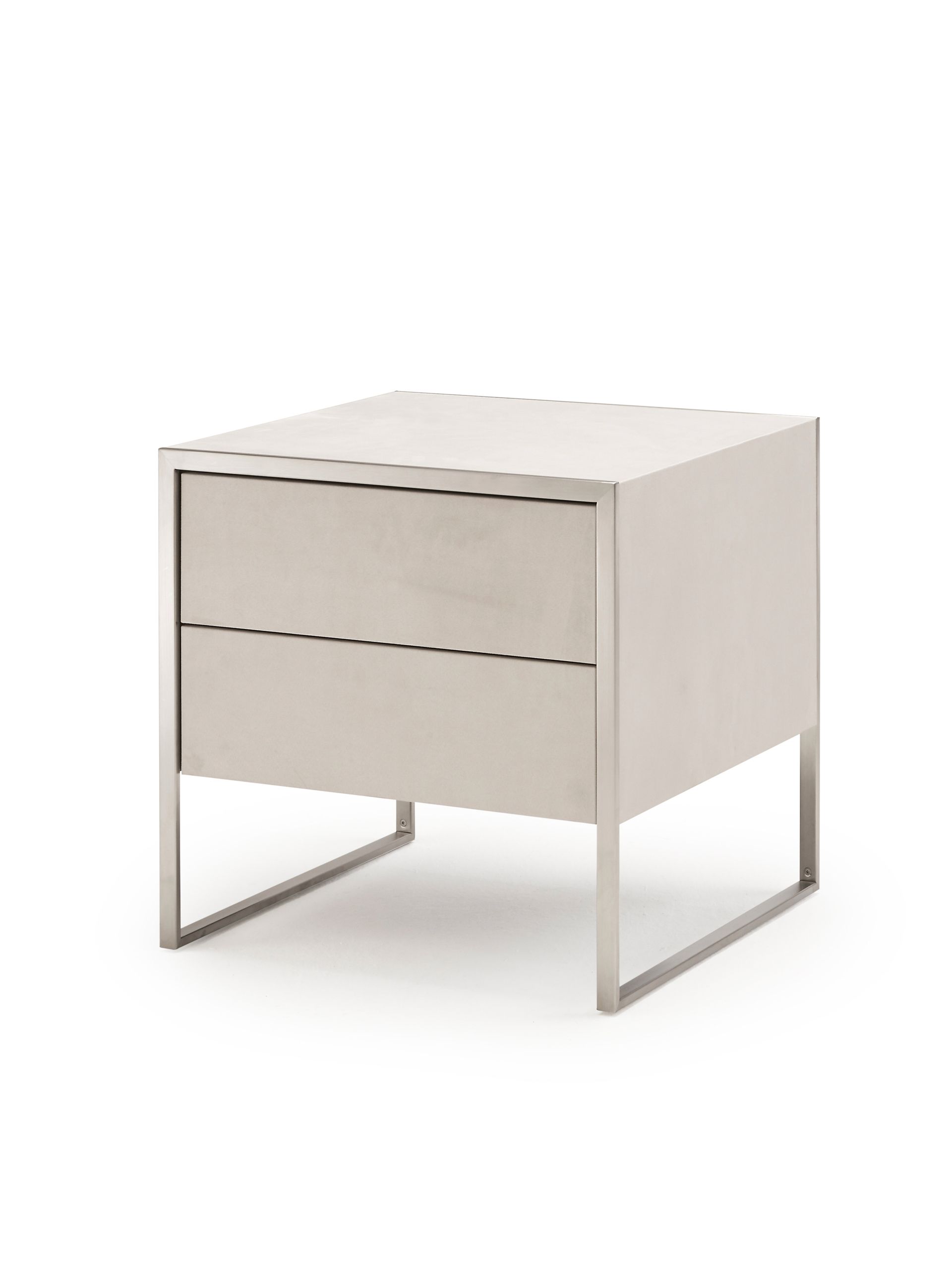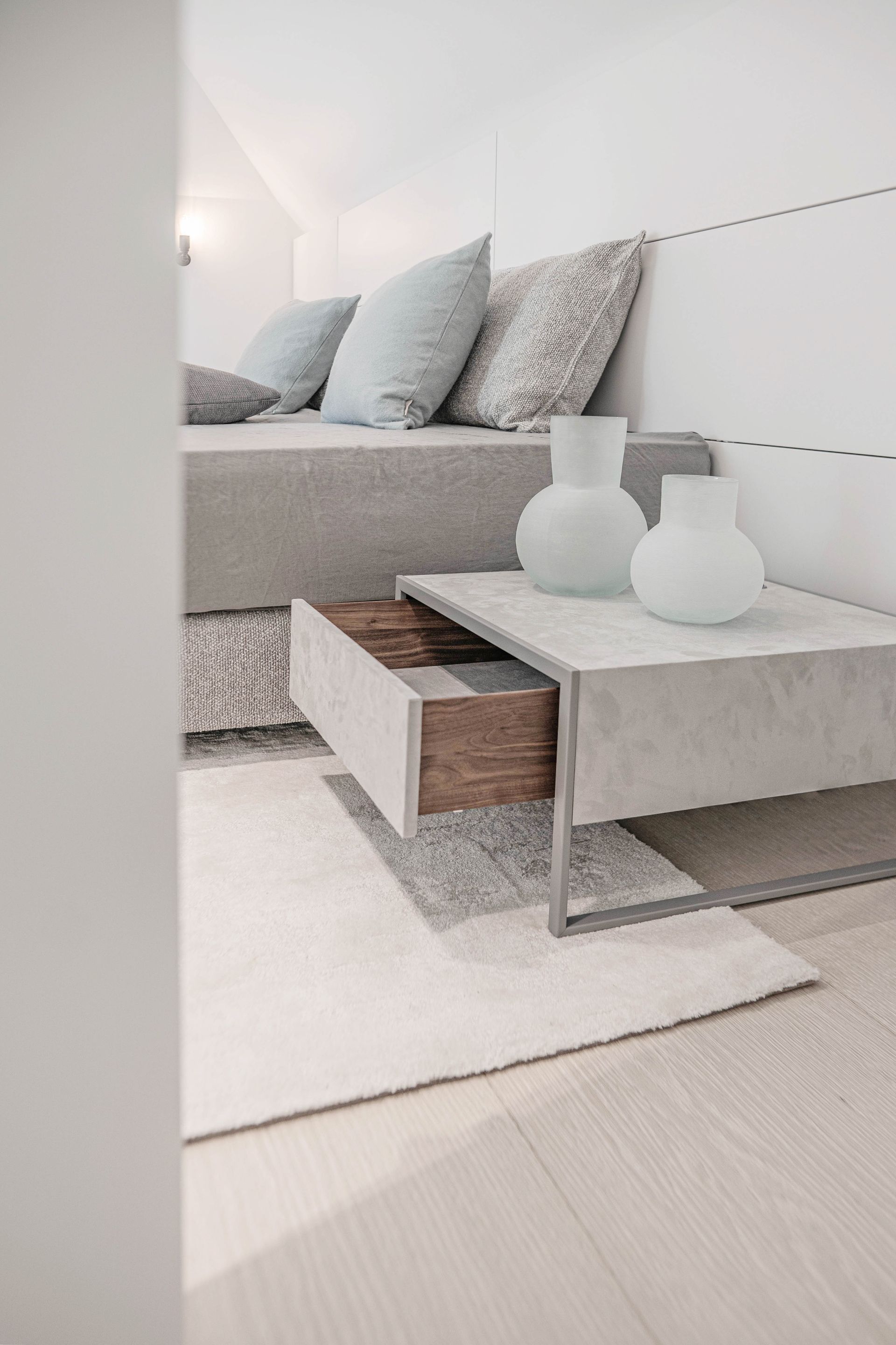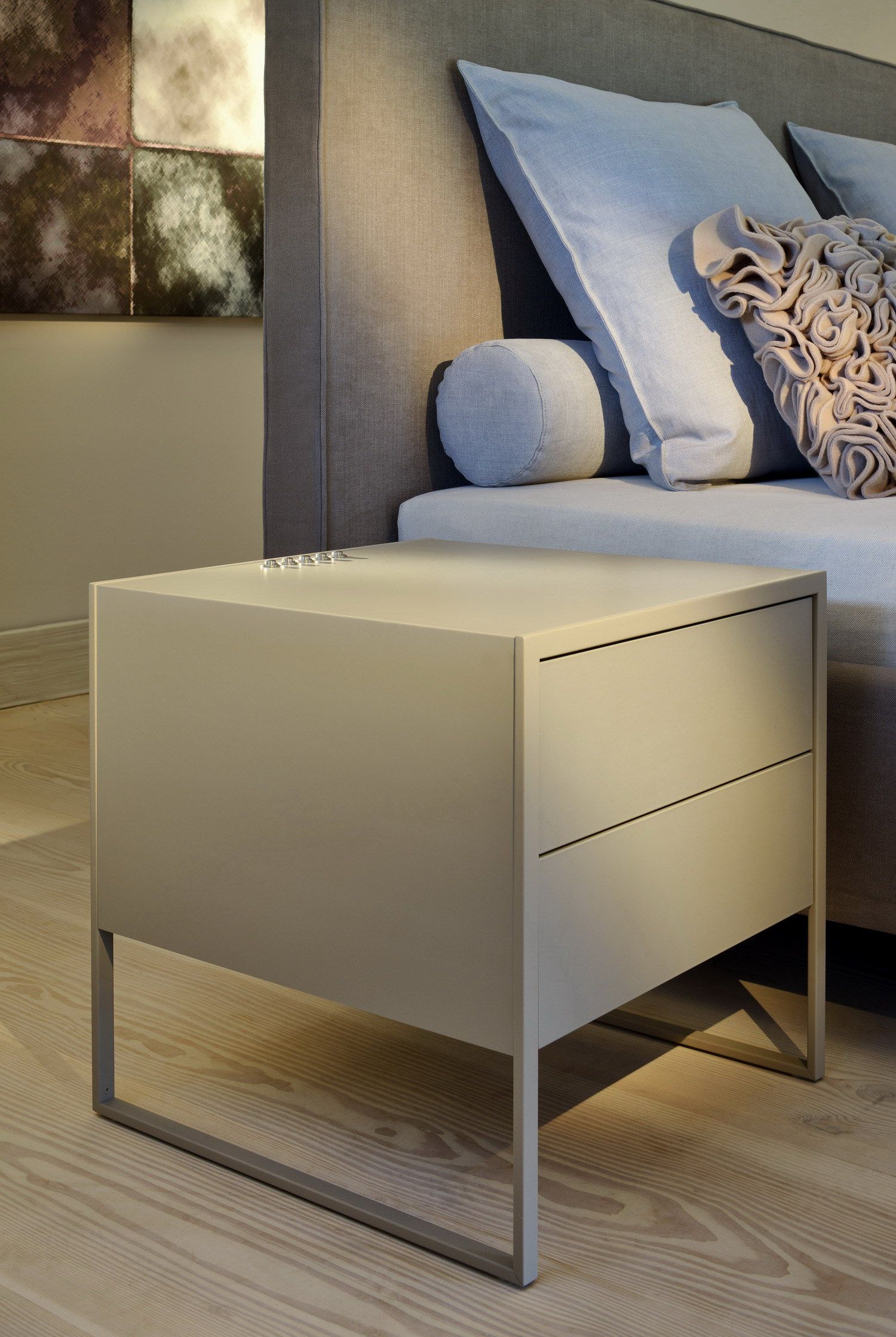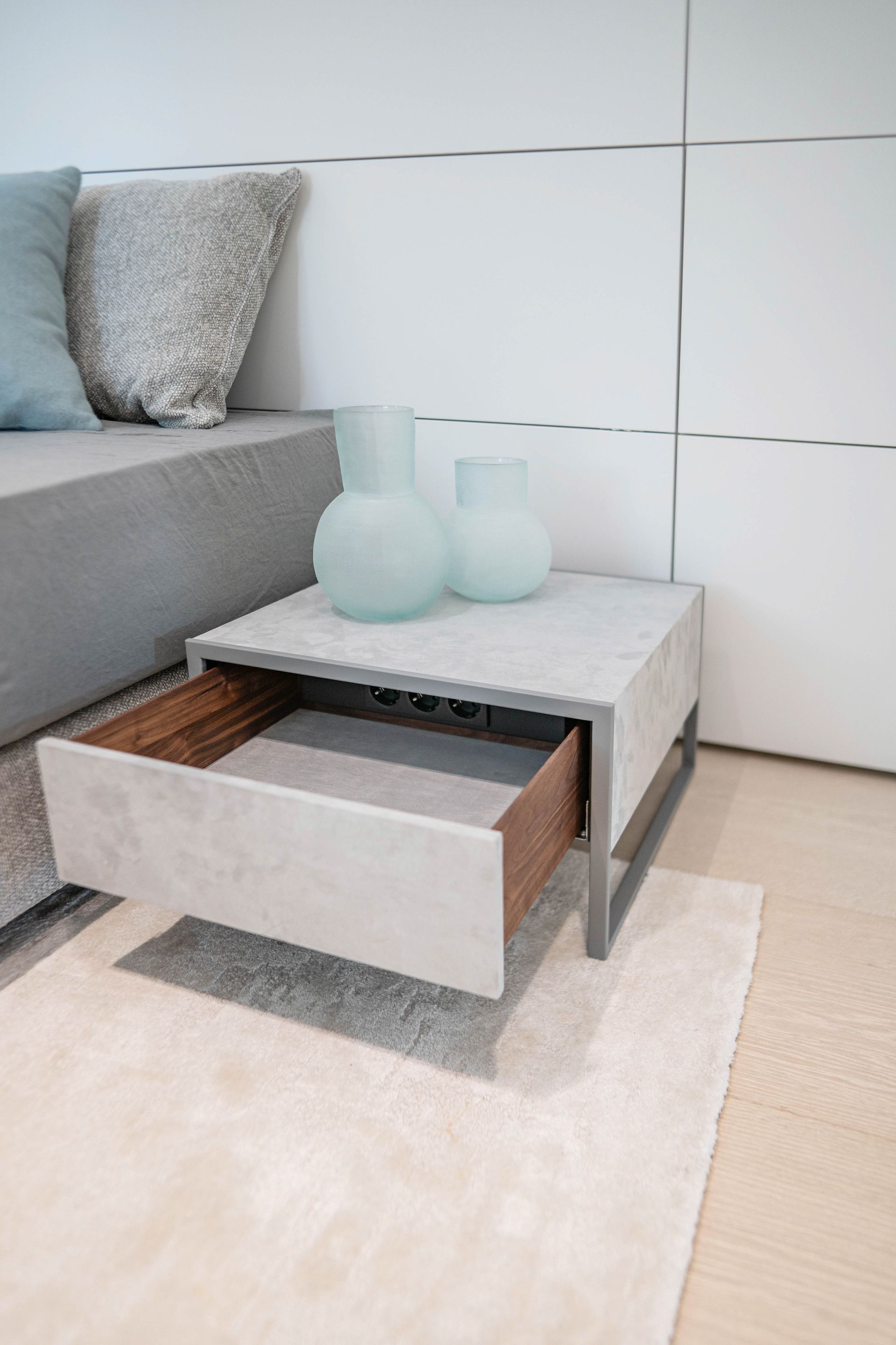 Especially for the requirement of box spring beds with their different heights, this variable bedside cabinet system was developed. With 34 different color and material versions, you can individually combine the bedside cabinets to almost any bed.