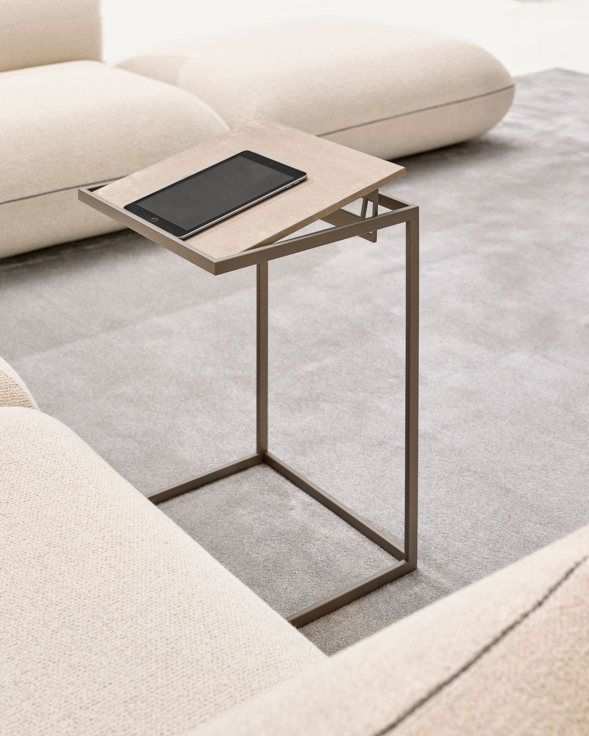 It is suitable as a slim, straight side table with footprint as an ideal complement to an upholstered set. This makes checking email or reading novels even more fun.